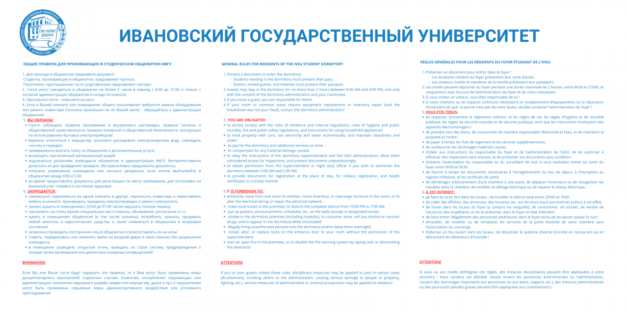 Общие правила для проживающих в студенческом общежитии ИвГУ