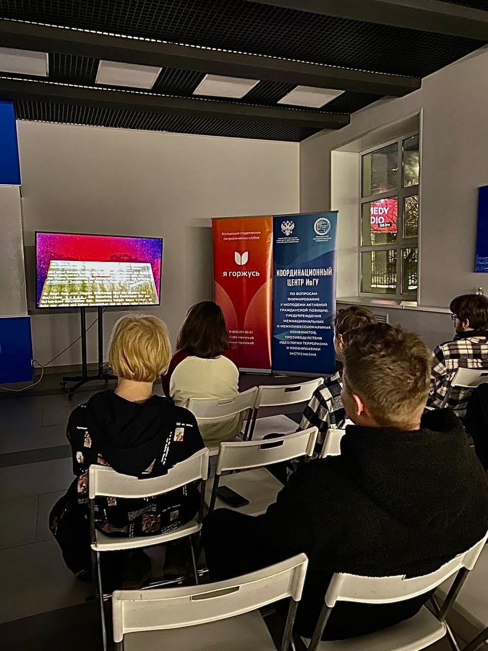31 января в Точке кипения ИвГУ состоялся кинопросмотр документального фильма «Ленинград. Дорога жизни», организованный для патриотических клубов города. На встрече присутствовали представители ассоциации клубов «Я Горжусь» ИвГУ и исторического клуба «Артефакт» ИГЭУ.