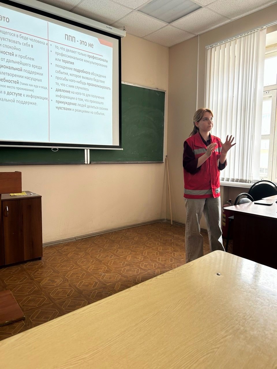 Важной частью встречи стало обсуждение оказания первой психологической помощи при чрезвычайных происшествиях. Студенты изучили методы, техники, которые могут быть полезны в различных ситуациях. Волонтеры подчеркнули, что оказать помощь в стрессовых условиях может не только специалист, но и любой человек, проявивший внимание и готовность оказать поддержку. Порой психологическая помощь не менее важна, чем физическая, и может сыграть ключевую роль в спасении жизней.