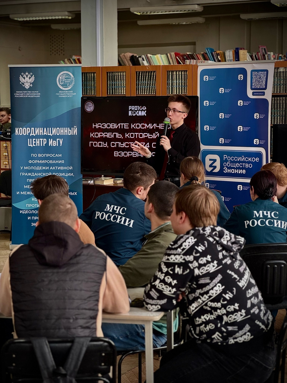 10 апреля в стенах Ивановского государственного университета прошла межвузовская интеллектуальная игра, приуроченная к празднованию Дня космонавтики. Мероприятие было организовано Координационным центром ИвГУ совместно с Российским обществом «Знание».