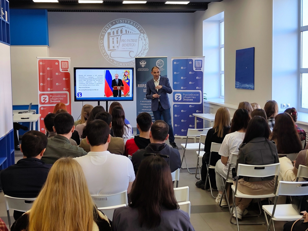 Перед студентами выступил Борис Юрьевич Мурванидзе — кандидат исторических наук, Председатель Совета Регионального отделения Движения Первых Ивановской области. Он рассказал о страшных и трагических страницах истории: геноциде советского народа, преступлениях нацистов и их пособников, трагедиях Бабьего Яра и Хатыни, а также о плане "Ост" — документе, который предусматривал массовое уничтожение и порабощение народов СССР как часть политики нацистского режима.