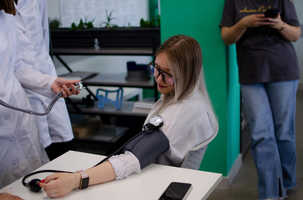 Помимо теоретических знаний, студенты получили возможность измерить артериальное давление, обсудить свои индивидуальные вопросы со специалистами — волонтерами-медиками, а также получить персональные рекомендации по укреплению сердечно-сосудистой системы.