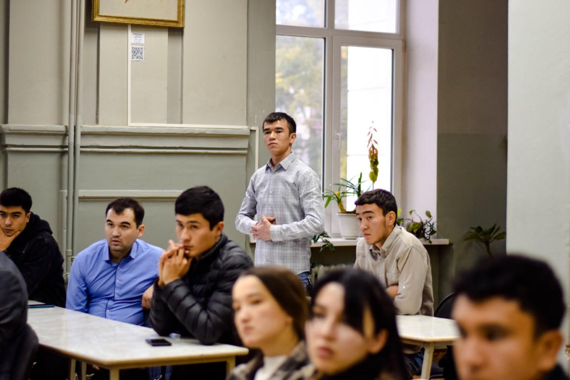 Students asked a lot of questions in Russian and Uzbek languages: about the employment of graduates at home, "double diplomas", internship, problems of registration and paperwork, etc. While answering, Mr. Damir Erkinovich Mamatkulov informed the students in detail about the numerous state support programs addressed to university students, on the measures taken by the leadership of the Republic of Uzbekistan for the all-round attraction of young qualified personnel to solve pressing economic and social problems, on the constant work of the state apparatus to facilitate registration issues. The conversation turned out to be very open and informative, and the students began to understand their rights, responsibilities and, of course, educational and professional perspectives better.