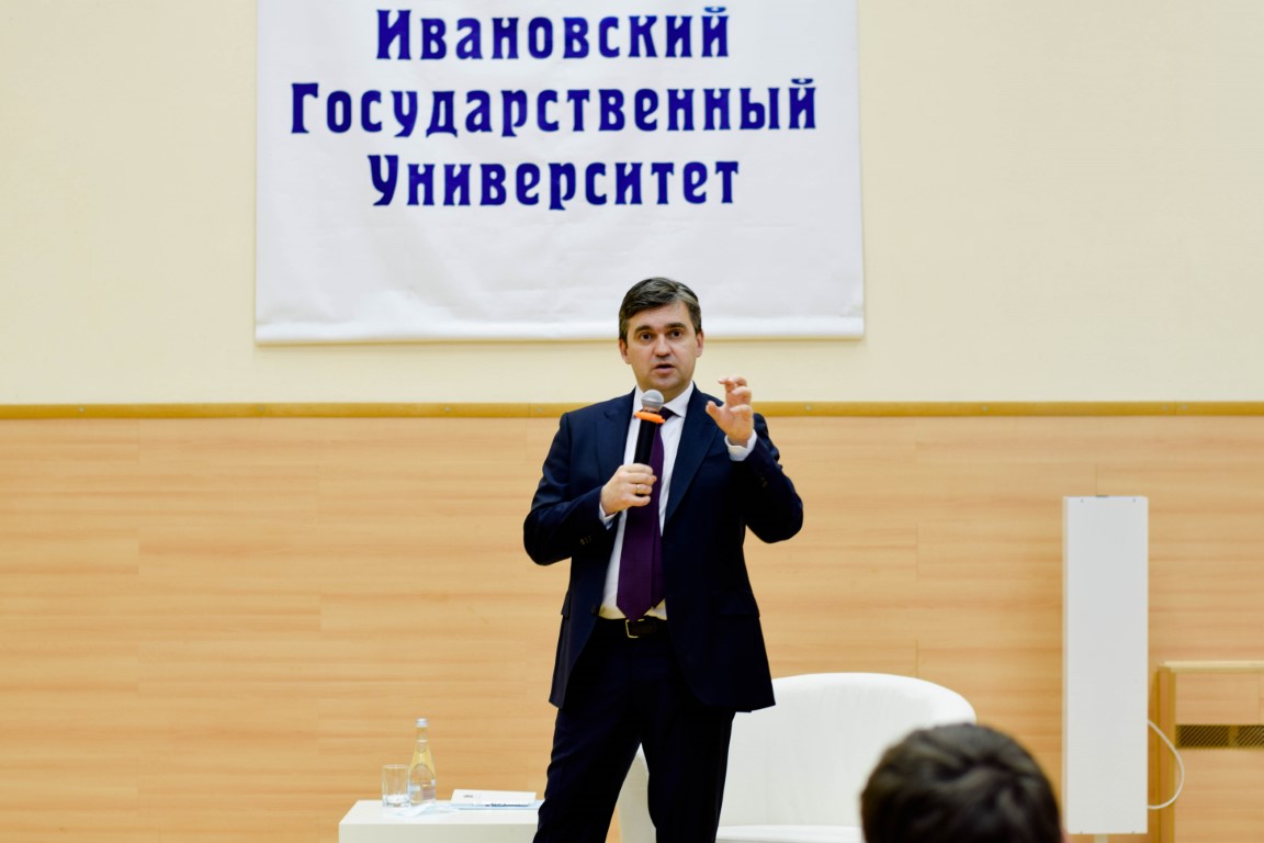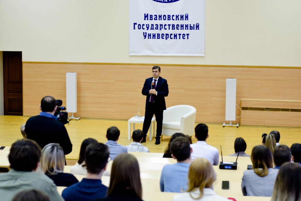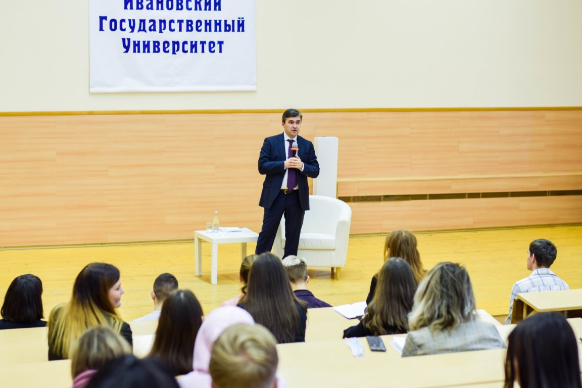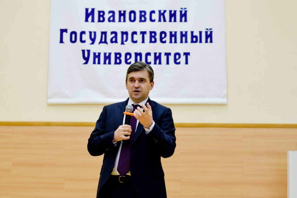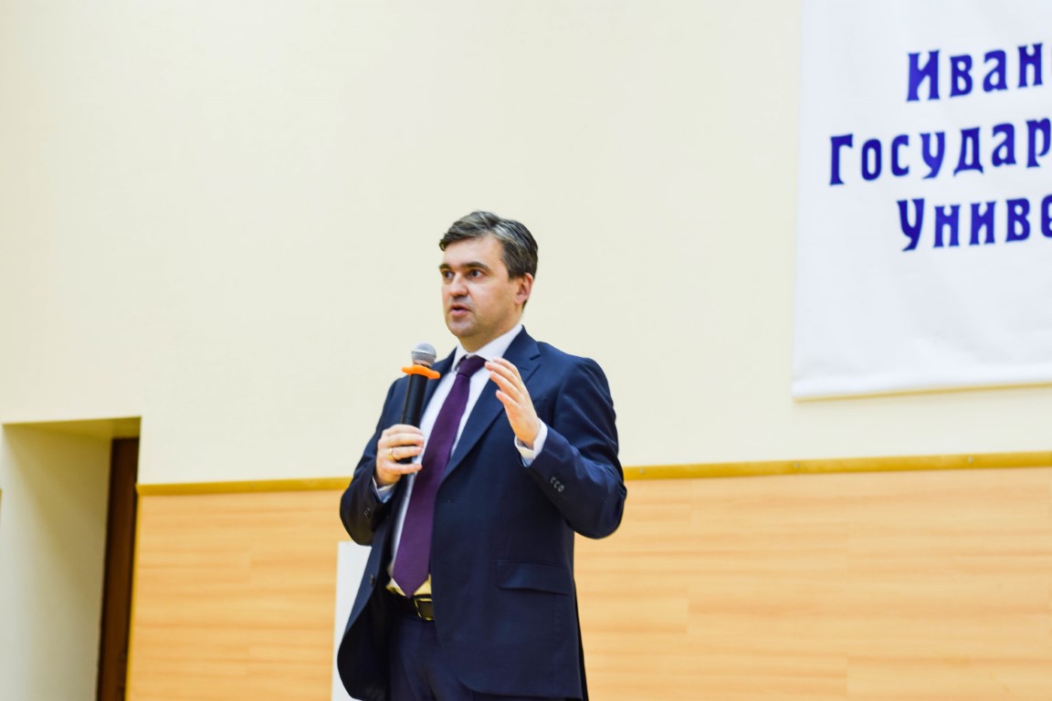 On January 24, on the eve of the Day of Russian Students, the assembly hall of IvSU 1st building hosted a meeting of student activists of Ivanovo universities with the governor of the region Stanislav S. Voskresensky.