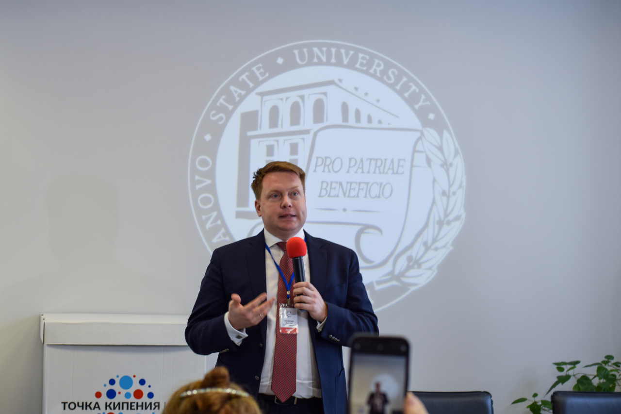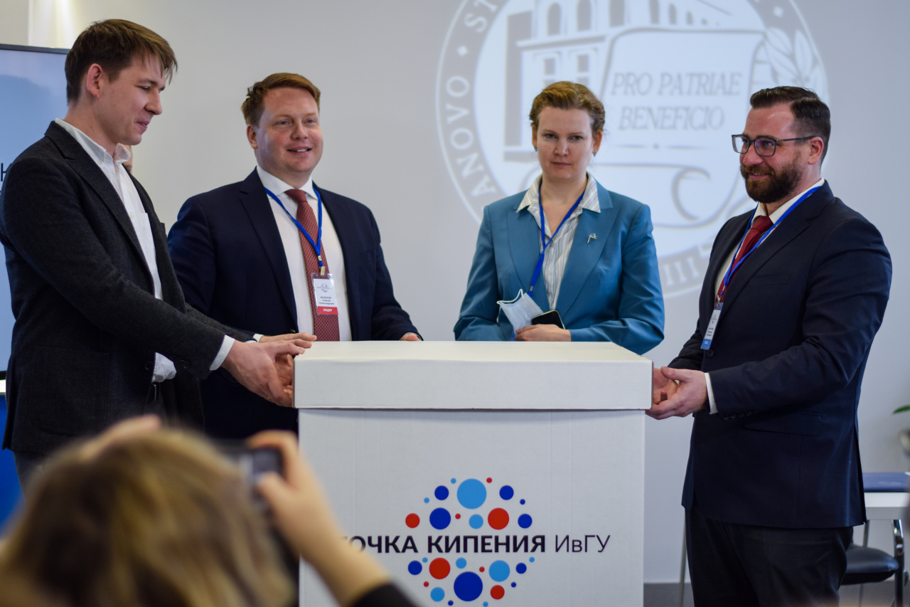 Boiling Points work with business partners, universities, regional development institutions, help local teams launch and widen projects, and support meetings of specialized communities. The “Boiling Points” format is actively developing today as a network of “unique spaces for teamwork” with the support of the Agency for Strategic Initiatives and autonomous non-profit organization "Platform of the National Technological Initiative", but, of course, the functionality of the “Points” is much wider, and their role is more significant. Today speakers told a lot about it. They were: special representative of the President of the Russian Federation for digital and technological development, general director of ANO “Platform of the National Technological Initiative” Dmitry N. Peskov; founder of the "Boiling Points" network in Ivanovo, Russian businessman and futurist Kirill B. Ignatiev; IvSU rector Aleksey A. Malygin; Nina O. Yanykina, rector of the "University of National Technology Initiative 20.35"; deputy chairman of the Government of Ivanovo Region Lyudmila V. Dmitrieva; head of Ivanovo Vladimir N. Sharypov; Andrey V. Zorin, manager of the Ivanovo branch of Sberbank of Russia; Boiling Point Network Development Director (ANO NTI Platform) Alina V. Yashina and Project Manager of the “Boiling Point Network Development Center” Vladislav S. Shirokov.