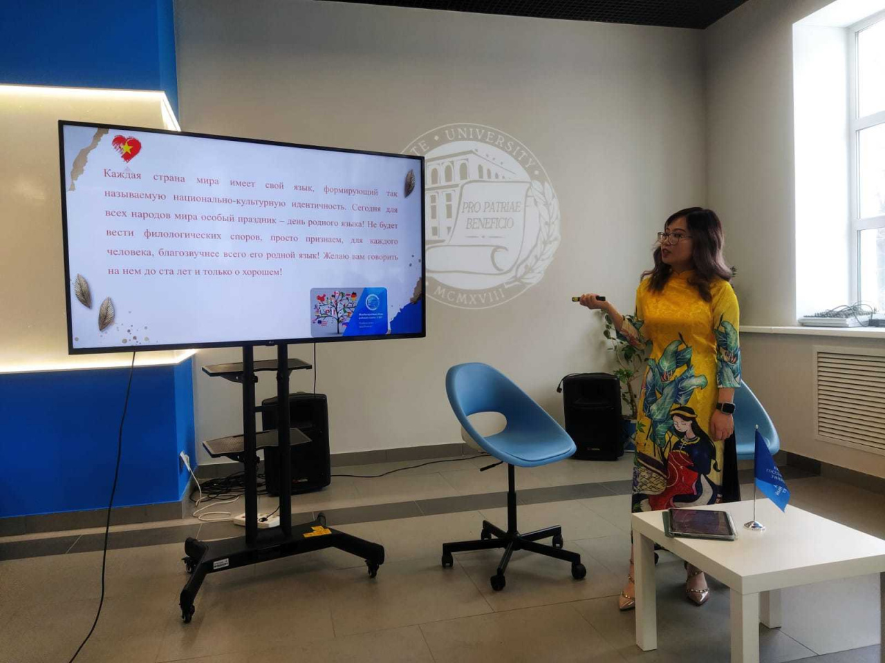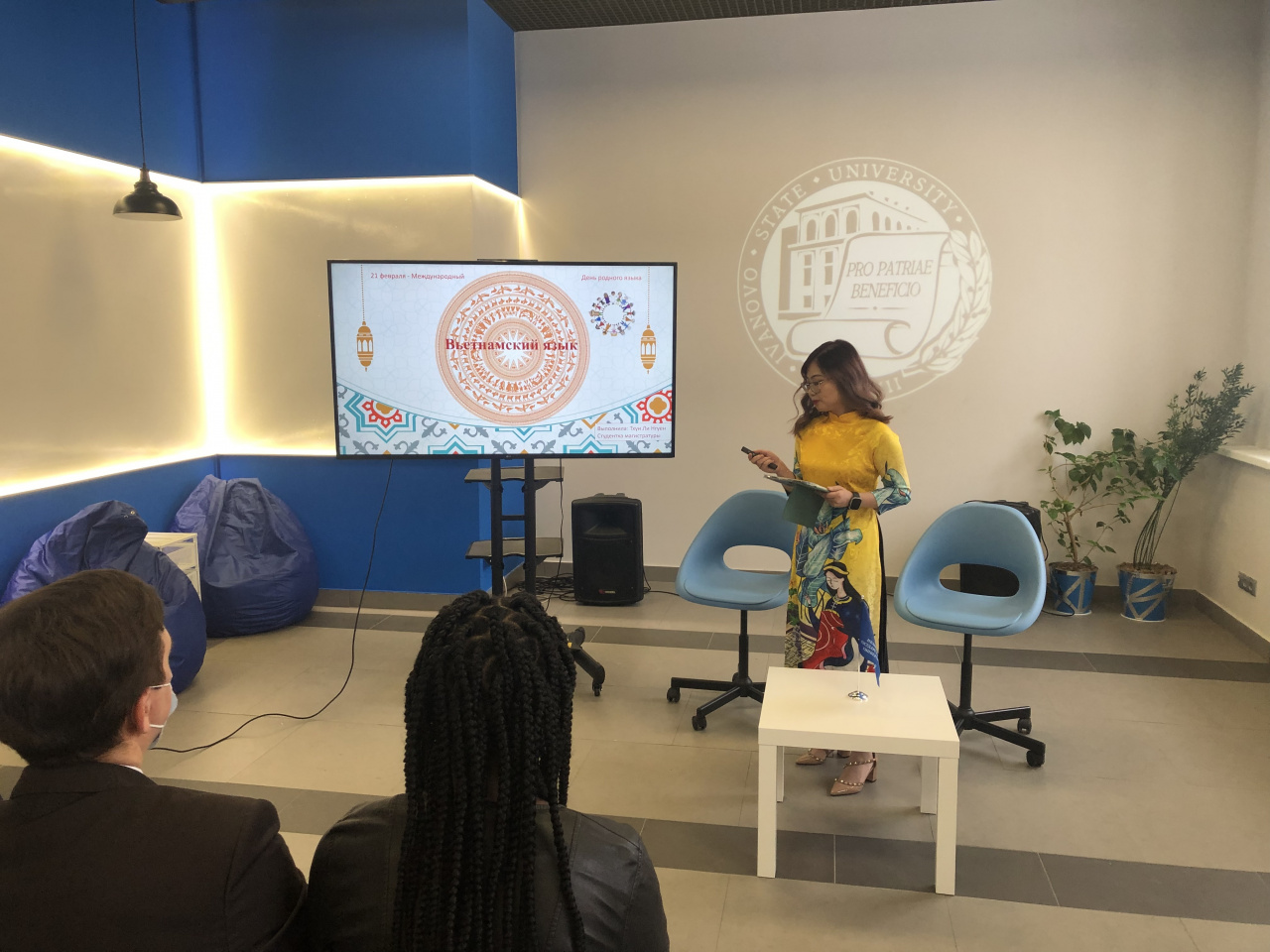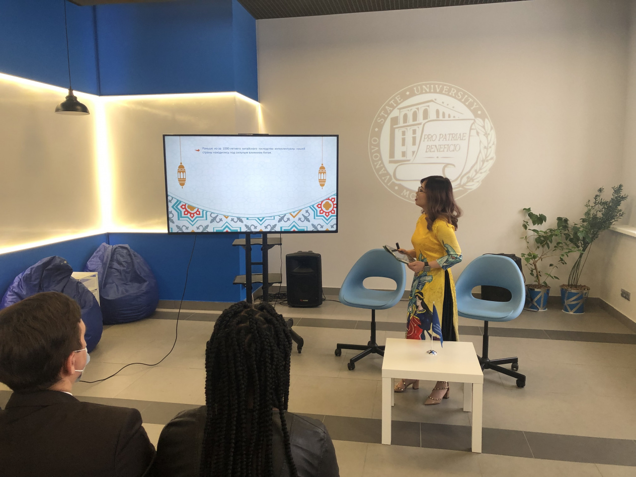 During the festival students from Asia, Africa and Europe studying at IvSU in the master's program "Russian Language and Culture in the Modern World" made presentations on their native language and master classes. There were stories about the specifics of Chinese, Vietnamese, Arabic, Kazakh languages, a linguistic walk through the motley map of the peoples of Africa, a small teleconference with Turkish students of the preparatory department of the Yeditepe University (Turkey), who are taking their first successful steps in studying Russian language abroad. All reports on mother languages were made in "great, powerful, free and truthful" Russian language, which unites all the participants - the mother language for millions of people in the world! Associate Professor of the Center for Russian Studies and International Education Natalia Zakharyan told about curiosities and difficulties of modern Russian language in interactive form.