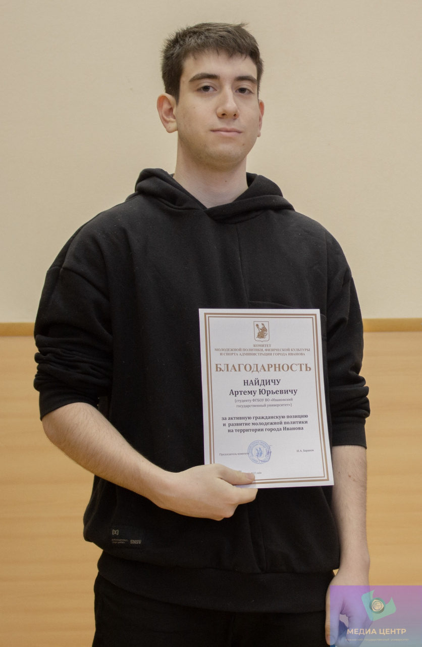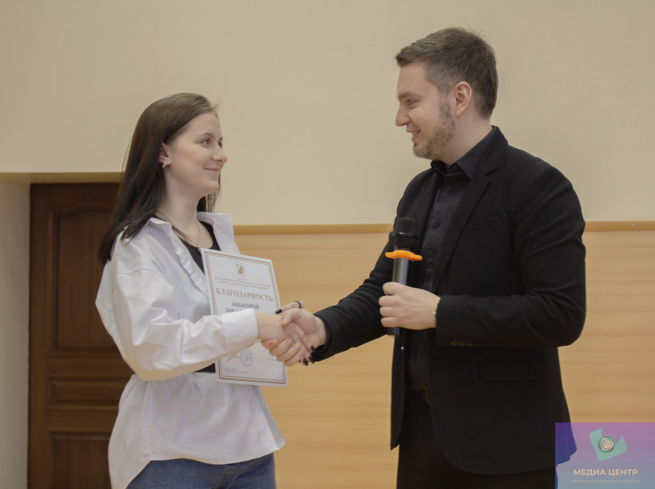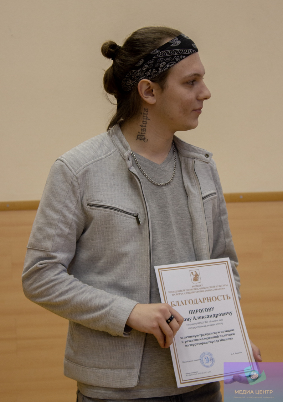 In the assembly hall, vice-rector for social development and international affairs Nikita D. Sorokin presented gratitude to the most active students from the Committee of Youth Policy, Physical Culture and Sports of Ivanovo City Administration. During the award ceremony, N. Sorokin warmly noted the merits and talent of everyone and wished them success in their future work.