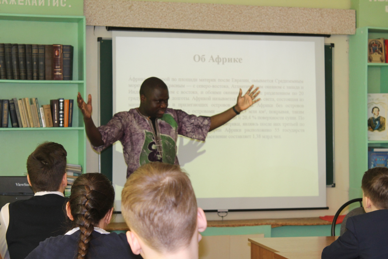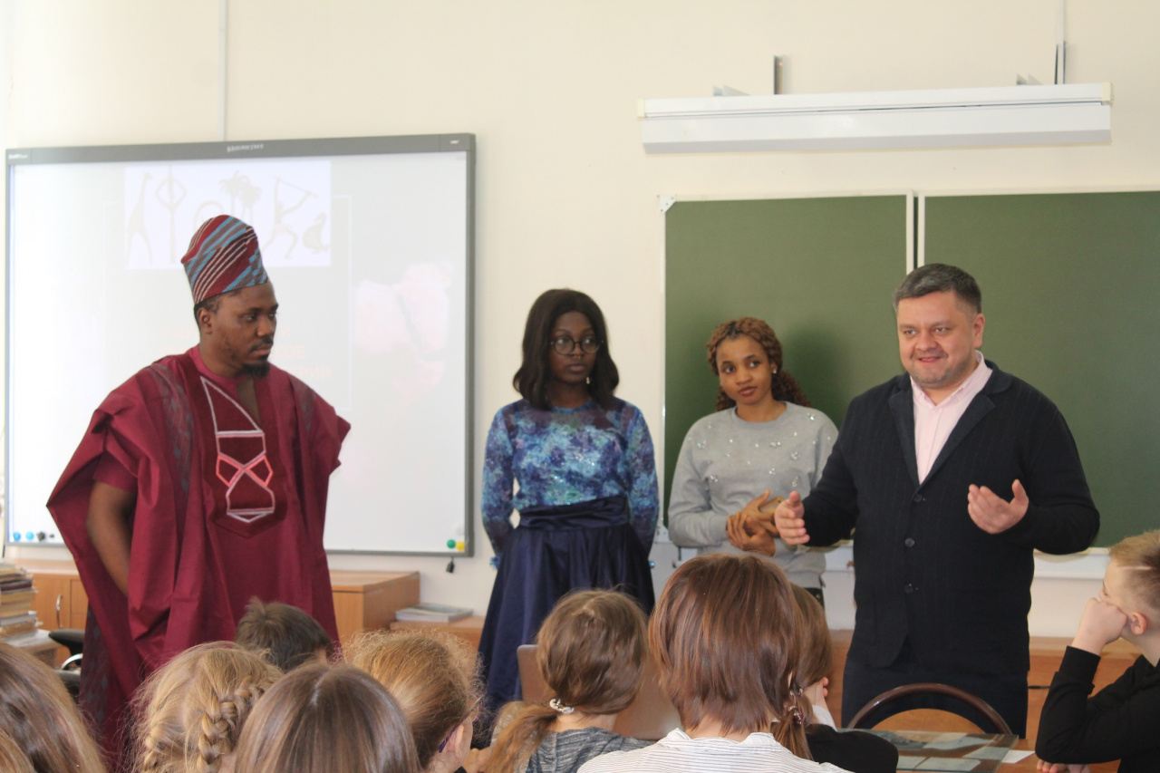 Lolade and Adetutu, students from Nigeria, who are at IvSU on an inclusive basis, were the most worried that day. “Today we are conducting a lesson ... And we arrived in Russia only 2 months ago. It is very difficult to speak Russian, although I myself started learning Russian at school, watching lessons on Youtube, and then chose this language to study at the Faculty of Humanities of my university in Lagos”, says Lolade. But the excitement from the first steps of teaching in a new foreign-language audience quickly disappeared, and it was replaced by burning eyes, bright emotions from warm communication and hospitality! At the end of their lesson, Lolade and Adetuta received painted Russian scarves as a gift from the students and their teacher S. V. Shishonkov. Throwing them over their shoulders, the African students sang a folk song in the Yoruba language in gratitude.