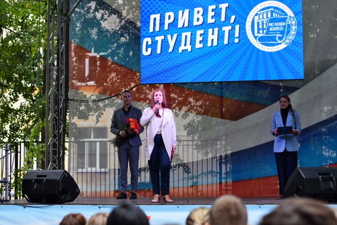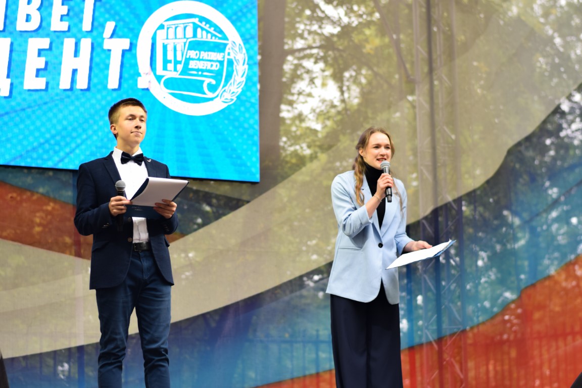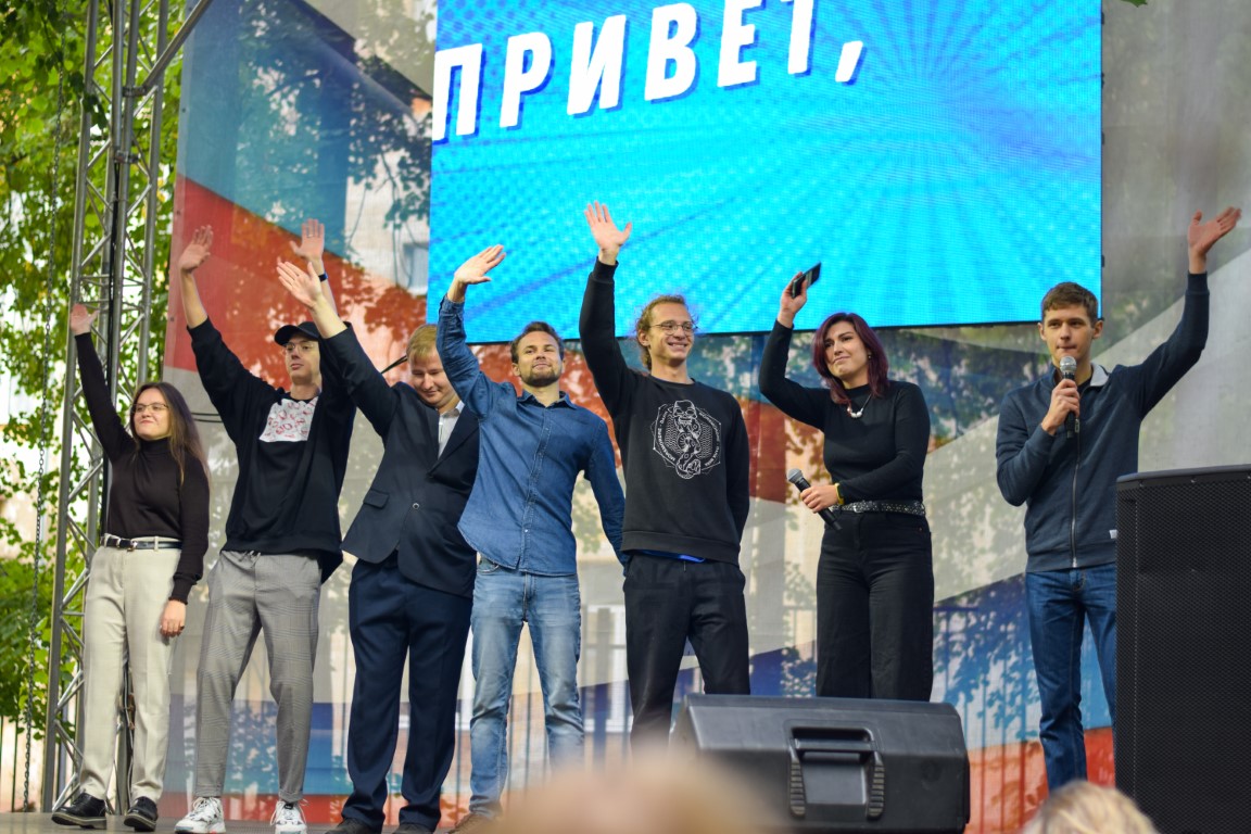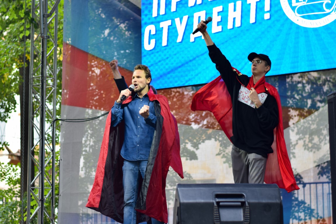 On September 1, at the site near the 3rd academic building of the university, the holiday "Hello, student!", which has already become a tradition, was cheerfully and fervently passed. No cold weather could prevent a worthy meeting of the wonderful replenishment of the "IvSU family" – our smart, purposeful and, of course, incredibly talented freshmen! Is it possible to freeze when on a specially built stage with spotlights the participants of the contests " Beauty of Ivanovo" and "Miss IvSU" gracefully defile, the students of the new and unique for the region direction "Education in the field of choreography" energetically dance and "light" with might and main presenters – Daria Gavrilova, Roman Pirogov, Alexander Nosov!