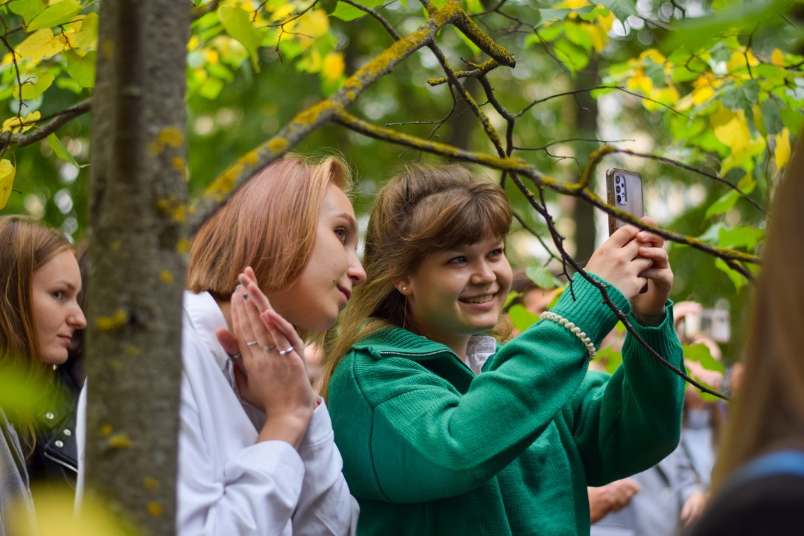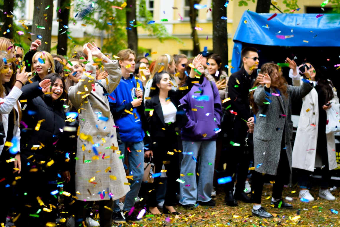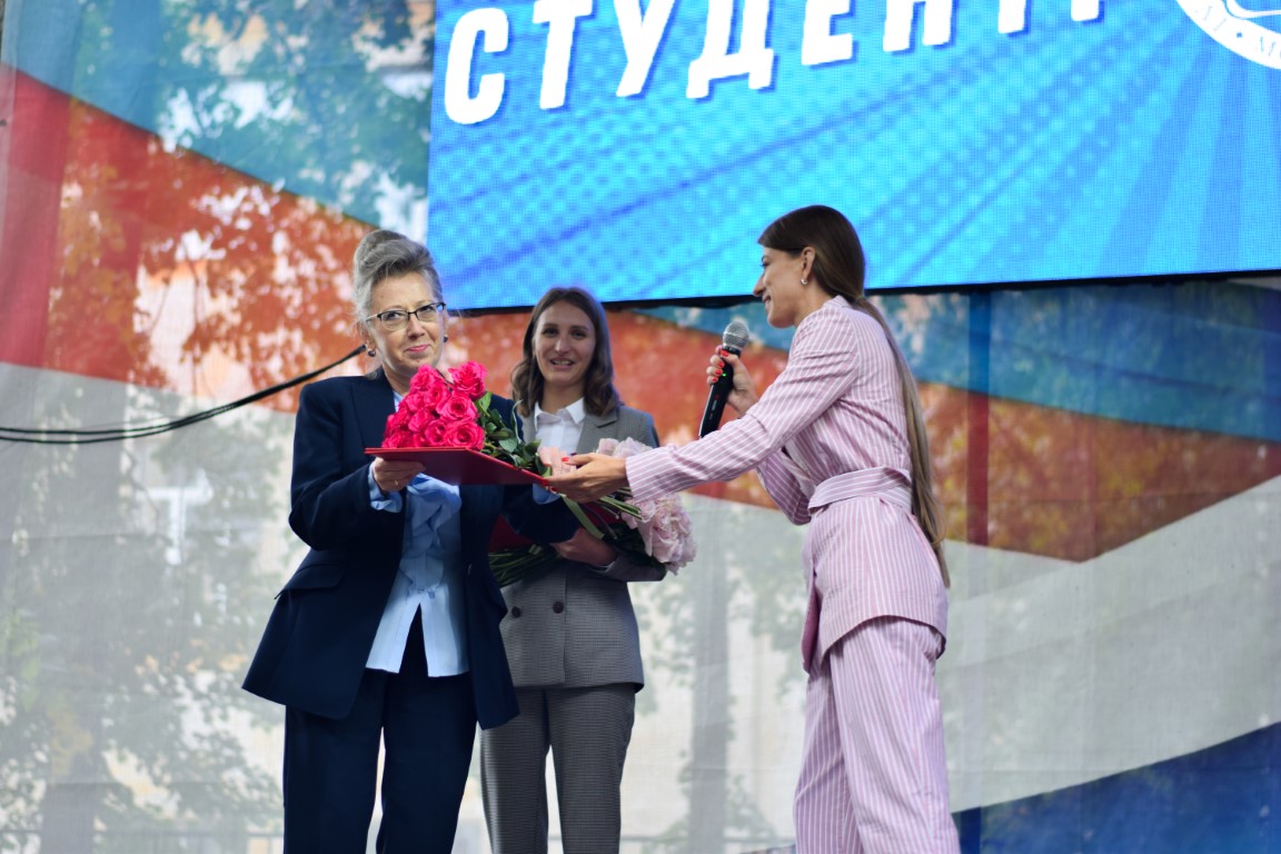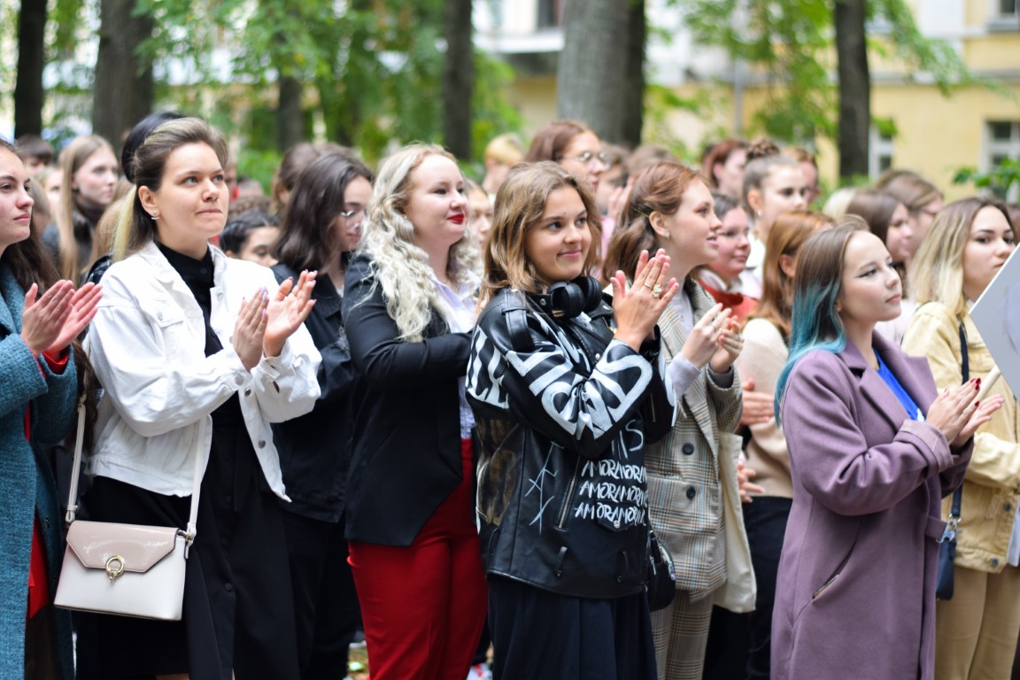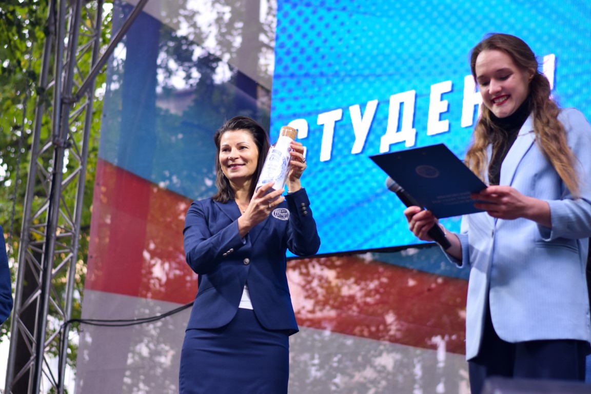 Like last year, the holiday was held in 3 stages, according to the institutes: IHS, IMITNS and ISES together with the Faculty of Law. Therefore, I would like to especially note, without exaggeration, the “shock work” of the hosts (virtuoso combining the presentation of guests, entertainer and musical performance), future choreographers and, of course, “beauties in kokoshniks”, dressed up, we note, in a very summery way! The student cards were solemnly handed over to the most “high-scored” first-year students: Olesya Ivanova, Anna Lyubimova, Stefania Suleymanova, Arina Agafonova. A stormy friendly reaction all 3 times was caused by a cheerful student oath: “We, students of Ivanovo State University, entering the university community, solemnly swear ...” (for each item, freshmen had to answer “we swear”, from “always attend lectures” to “on don’t bring a spur exam” – that’s what we believed!) – and a solemn laying in the “time capsule” of a “message to the future” prepared in advance by freshmen and teachers, which will be opened in 4 years, so that in July 2026 in a solemn atmosphere every student can remember yourself as a freshman and your aspirations. HIS students pleased with the excellent performance of the "KVN" team with bright "historical", "linguistic" and "psychological" skits; for the first-year students of IMITNS, IvSU teacher and part-time singer-songwriter V.V. Novikov performed with a guitar.; and the stage of ISEN and the Faculty of Law was decorated with a whole parade of "star guests".