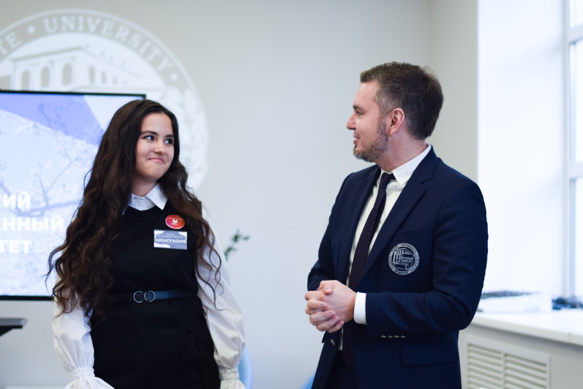 On September 21, “Night at the University” was held at the “Boiling Point – IvSU” and other locations of the 1st academic building, a social project for refugees from the DPR, LPR and regions of Ukraine. The event included informational tours of IvSU, master classes were organized for children, and a round table “Protection of the rights of refugees: social guarantees and protection of the right to education” was organized for adults. The meeting was moderated by Vice-Rector for Youth Policy and Social Development Nikita Dmitrievich Sorokin, who also told the audience about our city, Ivanovo universities and the history of IvSU.