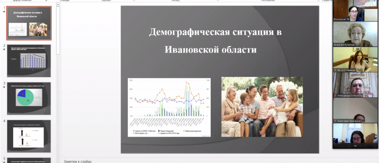 On October 1, 2022, within the framework of the symposium, a meeting of the Scientific Council of the Department of Social Sciences of the Russian Academy of Sciences “Demographic and migration problems of Russia” was held. O.A. Khasbulatova, member of the Scientific Council "Demographic and Migration Problems of Russia" UN RAS, and N.S. Rychikhina, Candidate of Economic Sciences, Associate Professor of Ivanovo State University, presented a scientific report on the topic "Demographic situation in the Ivanovo region".
