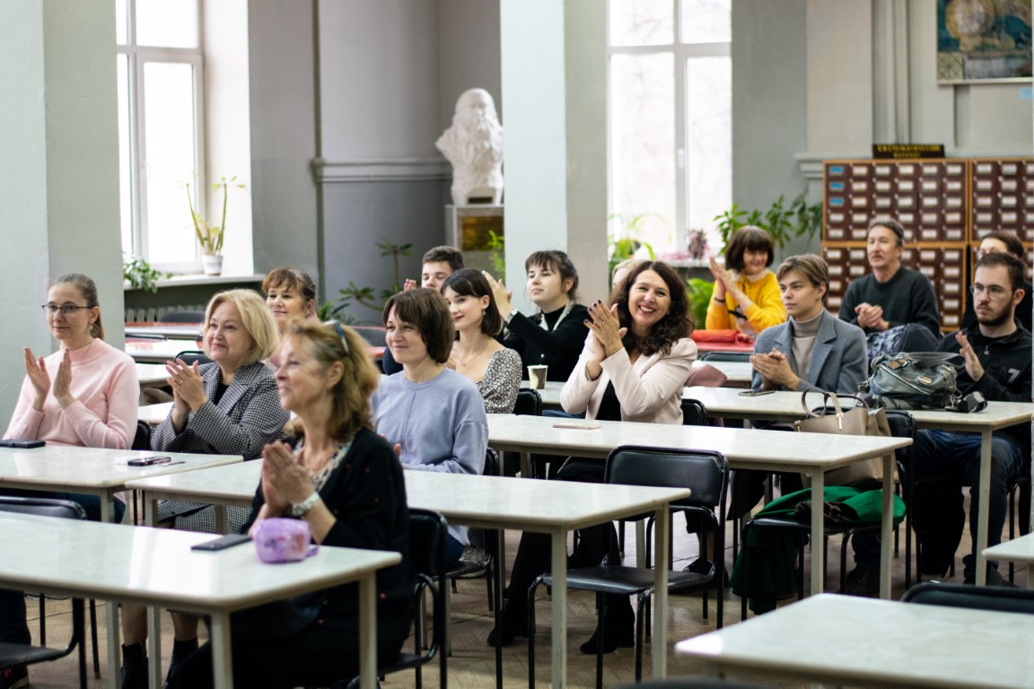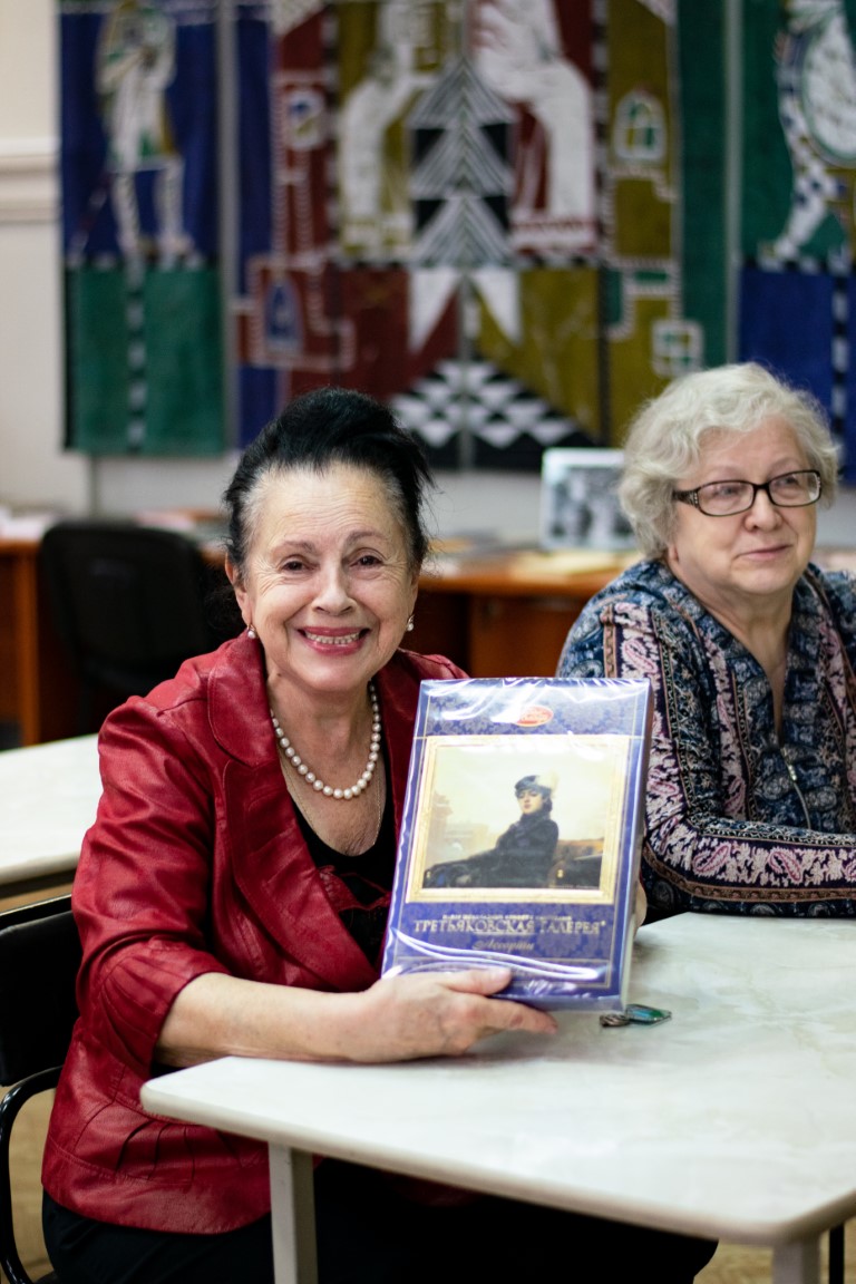 The curator of the project Sofya Lukyanova held a traditional competition for a sweet prize with those present, but this time the question was very serious: "Find three signs of the implementation of the national code in the paintings of Irina Kazimirova". Nadezhda Vasilyevna Usoltseva, who needs no introduction, brilliantly and almost instantly coped with the task, giving a simply cultural commentary in her answer!