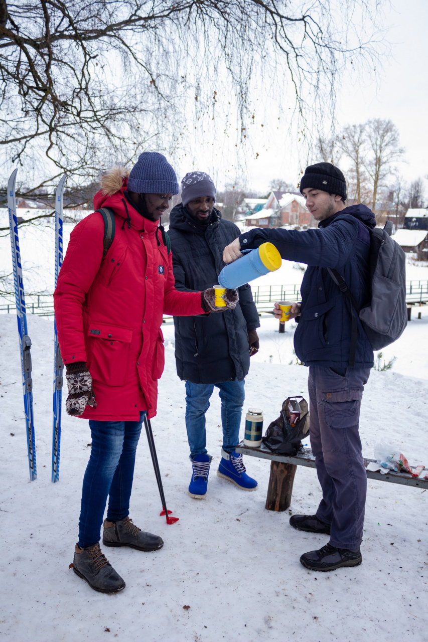 Fans of cozy winter walks got a photo session in nature, learned how the park got its name «1905 Revolution Park of Culture and Leisure», talked about the joys of student life together with the director of the Institute of Socio-Economic Sciences Irina Kurnikova and learned how to find a way out of the difficult situation with the help of ... tea drinking!