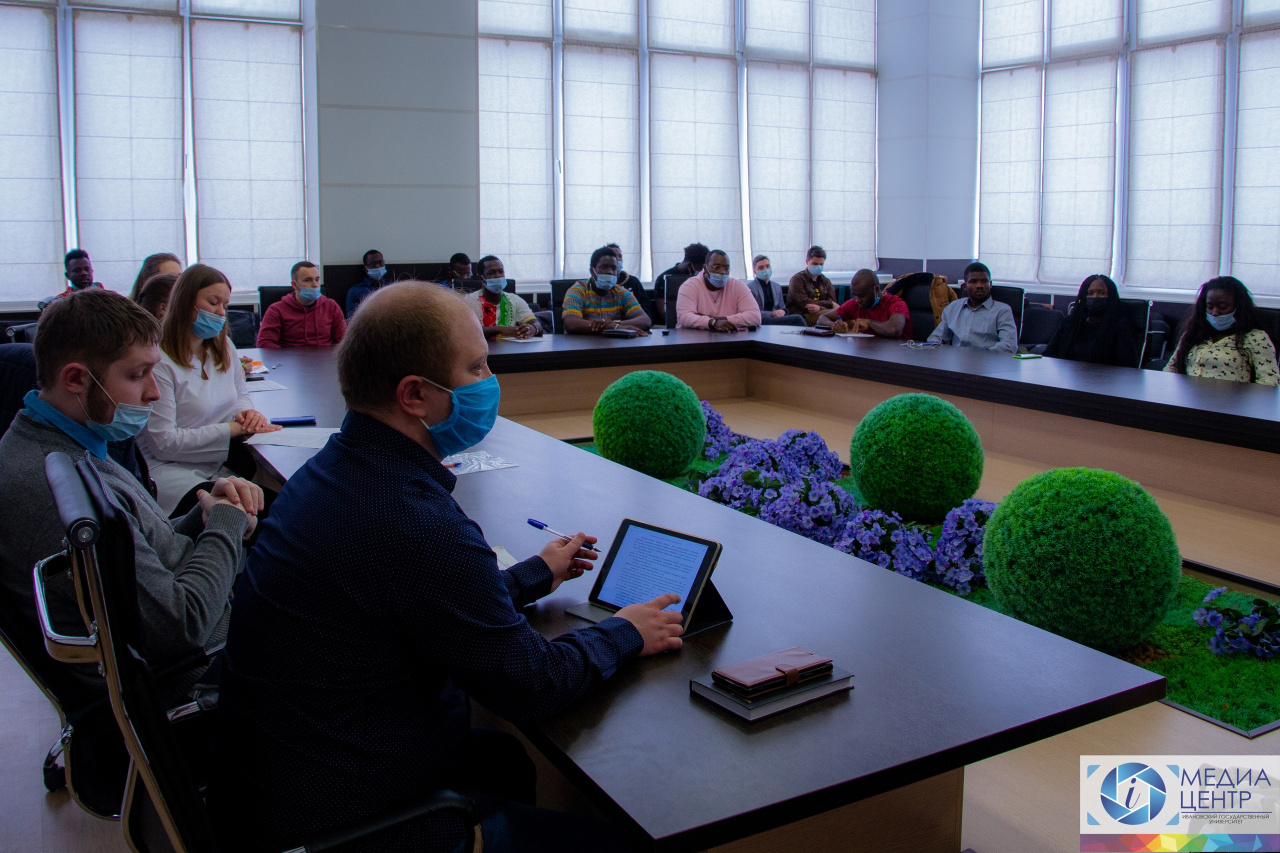 On March 26, 2021, under the leadership of the head of the REC of IvSU "Accessible Legal Environment", Head of the Department of Constitutional Law and Human Rights N. V. Isaeva, a meeting of bachelors of 2-4 courses and undergraduates of the 1st year of the full-time Faculty of Law – volunteers of the Center for Student Legal Assistance (legal clinic) – with foreign students studying in different areas of bachelor's and master's programs was held in the conference hall of the 6th building of the IvSU.