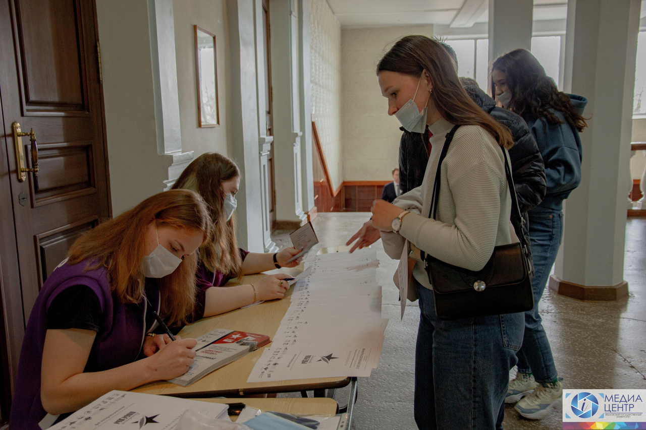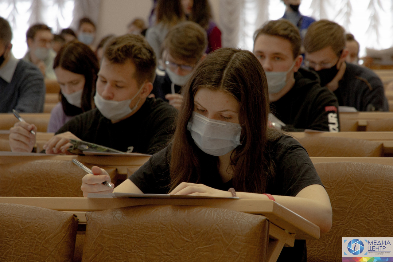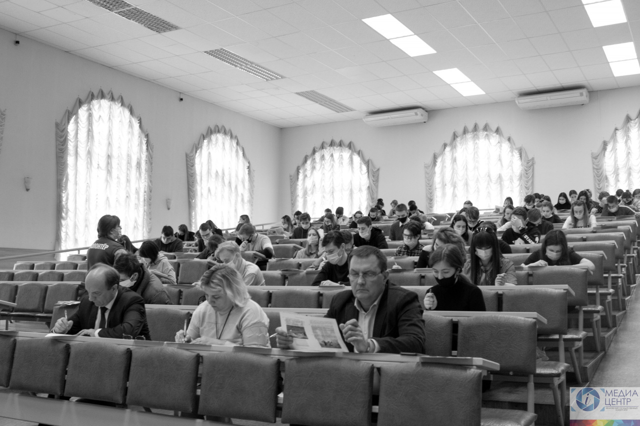 The assembly hall of the 1st study building welcomed everyone registered at диктантпобеды.рф. 70 people took part at the dictation – students, teachers and quests.
