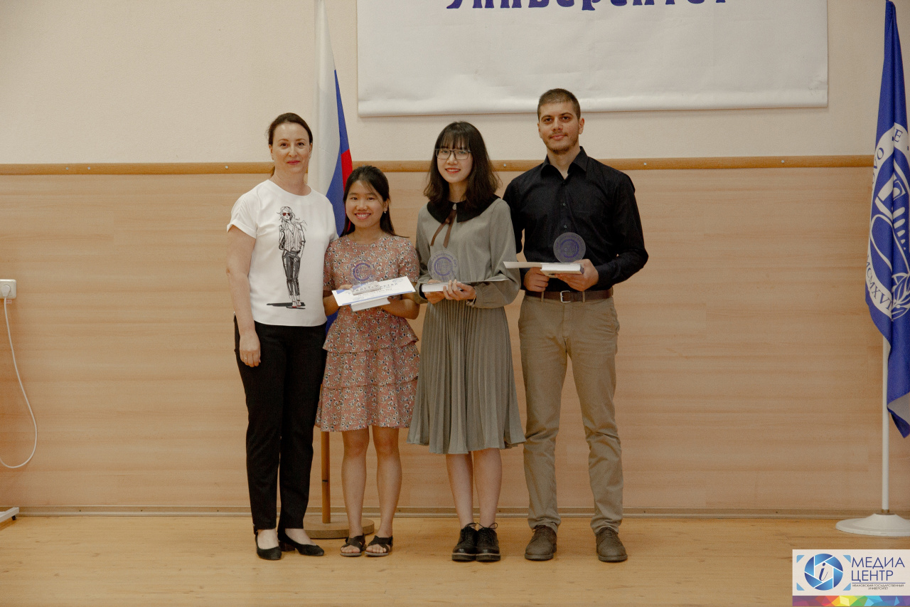 Head of the Center for Russian Studies and International Education, Irina Ibrahim congratulated the best foreign students as they took an active part in the life of the university: Pham Ngoc An, Chrakyan Karen, Nguyen Thi Bit Yen.