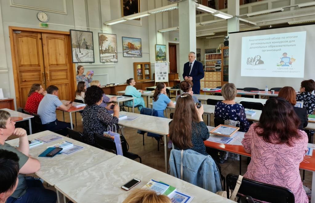 2 июня в читальном зале Ивановского государственного университета состоялось торжественное награждение победителей и дипломантов региональных конкурсов для педагогов дошкольных образовательных организаций «Читаем Ушинского» и «Детский сад – современный формат». Конкурсы были организованы кафедрой непрерывного психолого-педагогического образования, в работе жюри конкурса также принимала участие Екатерина Витальевна Тихомирова – учитель-логопед высшей квалификационной категории, абсолютный победитель Всероссийского конкурса профессионального мастерства «Учитель-дефектолог России -2023» в номинации «Учитель-логопед». Члены жюри представили аналитический отчет по итогам конкурсов, поделились своими впечатлениями от работ участников.