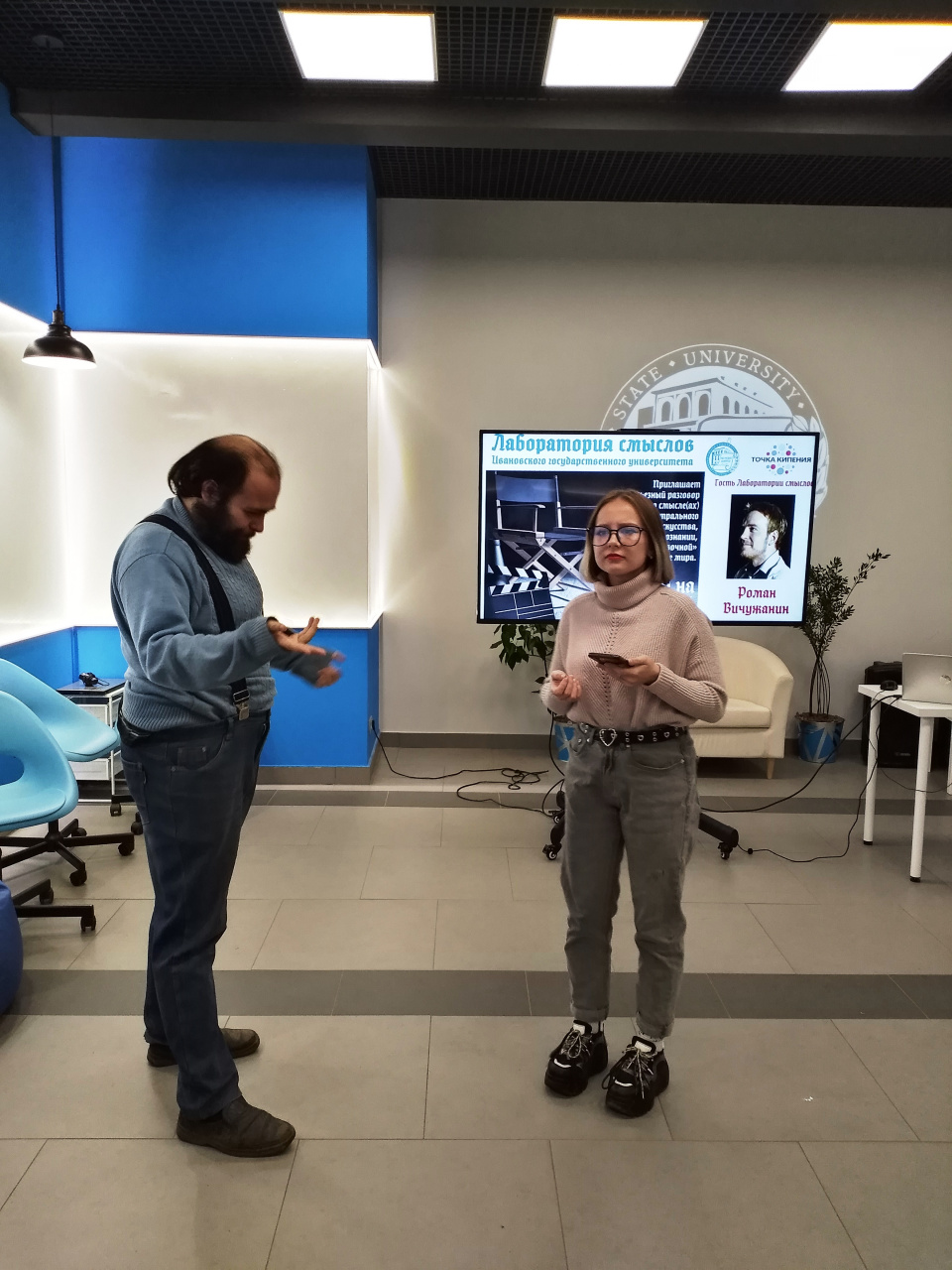 1 ноября 2022 года в «Точке кипения – ИвГУ» прошло очередное (второе по счету) заседание второго сезона «Лаборатории смыслов». В этот раз гостем Лаборатории стал выпускник Института сценических искусств, член Союза театральных деятелей России, актер Ивановского драматического театра Роман Вичужанин.