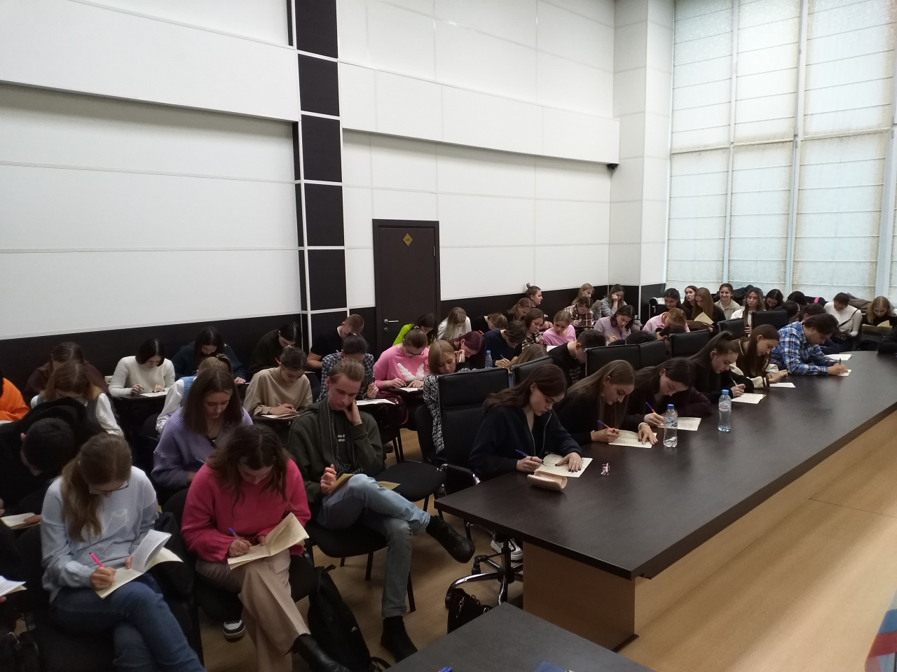 16 ноября прошел первый (для Иванова и России) логико-философский диктант, который увидел свет благодаря усилиям профессора кафедры философии Григория Смирнова и доцента кафедры философии Мери Меликян. Структура диктанта включала несколько блоков: реникса, логический вопрос, сравнительная философия, собственно диктант – и другие. Участники диктанта (а их набралось 125 человек) не только проверили свои знания по релевантным учебным дисциплинам, но и узнали занимательные факты из жизни и творчества выдающихся представителей мировой философской мысли.