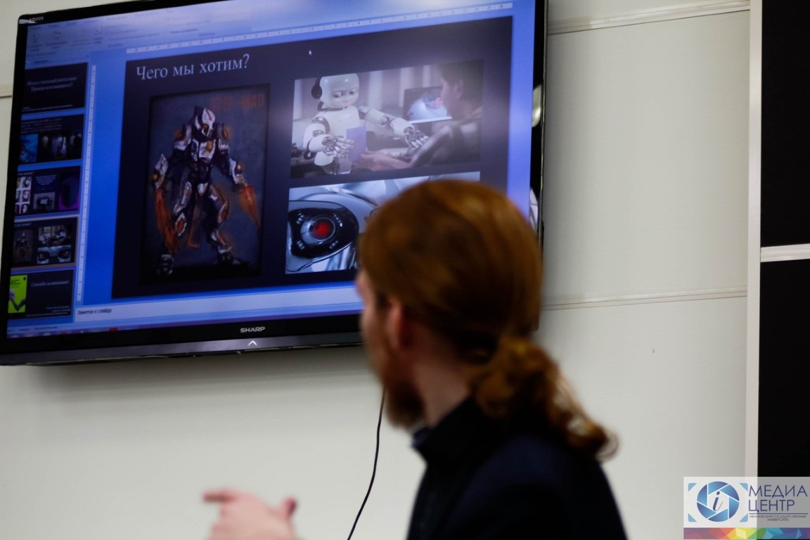 Открыла «Дни философии ИвГУ» дискуссия "AI (artificial ittelligence) Lethal Journey", в ходе которой студенты факультета математики и компьютерных наук, экономического, исторического и социолого-психологического факультетов обсудили проблему соотношения научных представлений и художественных образов Искусственного интеллекта. Благодарим наших спикеров – Александра Буфетова, Сергея Данилова и Анну Потехину, а также приглашенного эксперта кандидата экономических наук, исполняющего обязанности заведующего кафедрой информационных технологий в экономике и организации производства Арсения Журавлева.