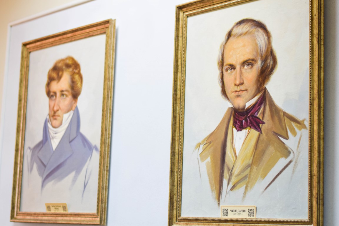 Заведующий зоологическим музеем А.А. Майоров рассказал об истории формирования экспозиции, неразрывно связанной с историей кафедры зоологии ИвГУ. Изначально портреты размещались в 4-м учебном корпусе университета, и некоторые преподаватели даже повышали оценки студентам, которые могли рассказать о судьбе и научных достижениях кого-либо из изображенных на них ученых. Теперь, после переезда в 1-й корпус и открытия выставки, получить эти знания не составляет труда, ведь каждый портрет сопровождается QR-кодом: перейдя по ссылке, можно получить необходимые сведения. А.А. Майоров призвал не лениться делать это, «быть любопытными», интересоваться судьбой ученых и воспринимать их жизнь как образец для подражания. В качестве примера он привел несколько интересных фактов из биографий исследователей, чьи портреты представлены на выставке.