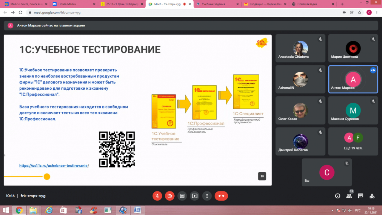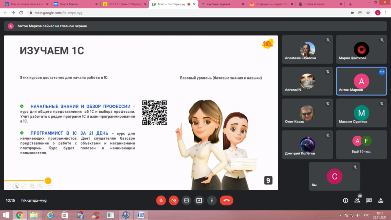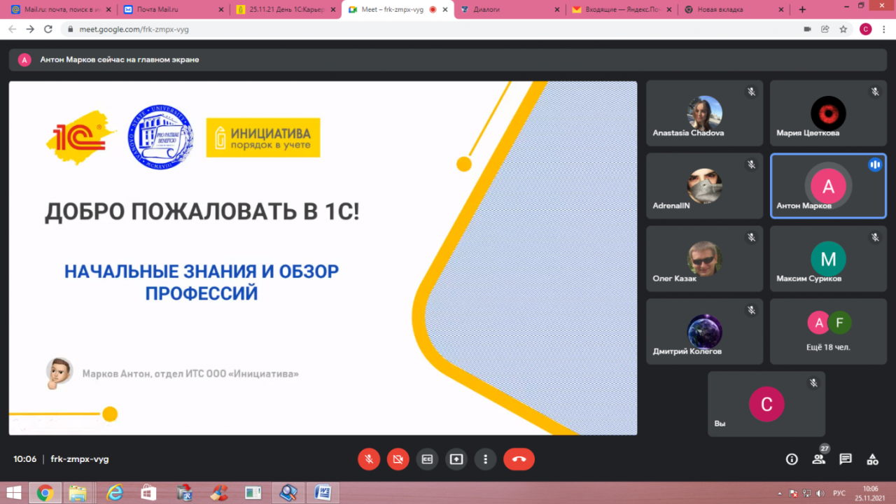 25–26 ноября фирма «1С», группа компаний «ОВК.ГРУП» и кафедра информационных технологий и прикладной математики ИвГУ провели в онлайн-формате «День 1С:Карьеры» для студентов и преподавателей ивановских вузов. Прямая трансляция проходила в GoogleMeet.