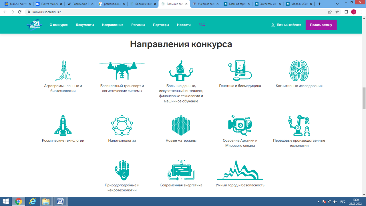 Финал конкурса проходил по 10 тематическим направлениям, в том числе «Агропромышленные и биотехнологии», «Большие данные, искусственный интеллект, финансовые технологии и машинное обучение», «Генетика, персонализированная и биомедицина», «Нанотехнологии» и другим.