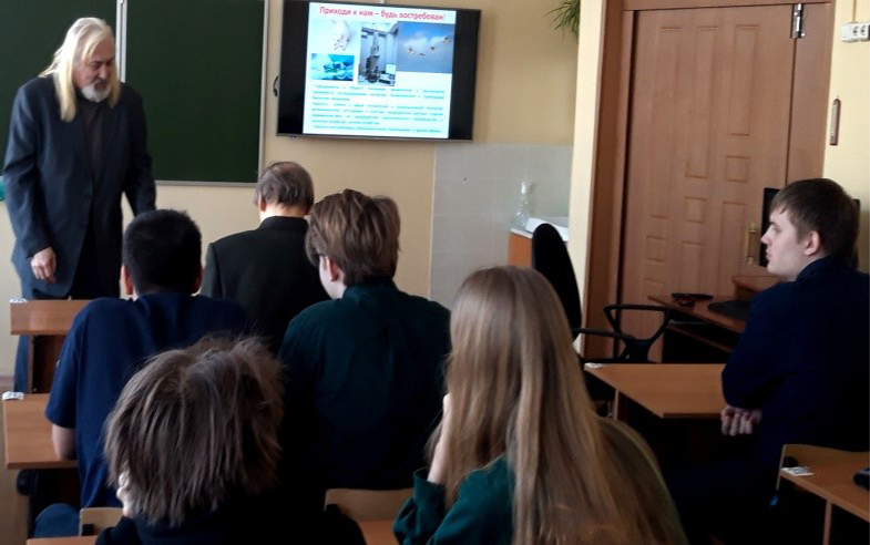 Важным компонентом системы профессиональной ориентации учащихся являются встречи и беседы преподавателей вузов с выпускниками школ – потенциальными абитуриентами. 14 апреля 2022 г. в рамках воспитательной работы преподаватели кафедры биологии – зав. каф. Е.А. Борисова, проф. В.А. Исаев и доц. В.Н. Зарипов – провели встречи с учащимися 10-х и 11-х классов средней школы № 18 г. Иваново.