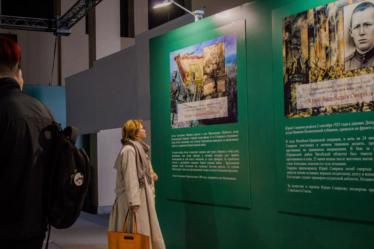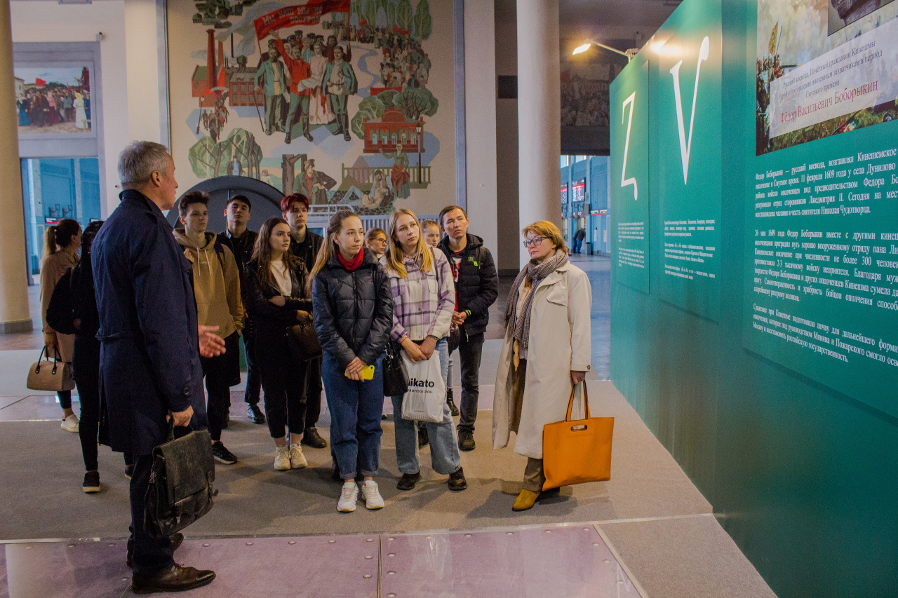 11 мая студенты ИМИТиЕН ИвГУ посетили выставку «Подвиг русского духа», открытую в арт-пространстве Ивановского железнодорожного вокзала. Она посвящена подвигам и силе духа защитников Отечества в разные времена. Его герои – 10 воинов, изменивших ход истории. Большинство – уроженцы нашего региона.