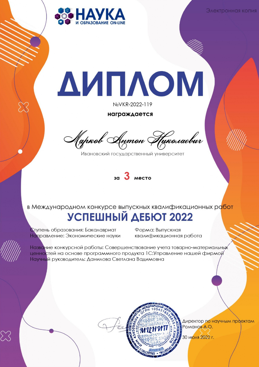 Летом у выпускников высших учебных заведений была отличная возможность поучаствовать в Международном конкурсе выпускных квалификационных работ «Успешный дебют 2022» и получить дополнительную оценку своей работе.