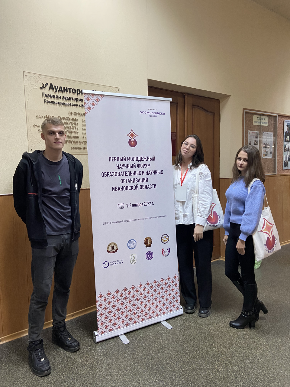 1–3 ноября 2022 г. студенты ИМИТиЕН ИвГУ М. Голубева, И. Герасимов, М. Уханова, Е. Алабова и П. Белова, выполняющие научные исследования в НИИ наноматериалов ИвГУ, приняли участие в Первом молодежном научном форуме образовательных и научных организаций Ивановской области. Этот Форум проводился Ивановским государственным химико-технологическим университетом при участии Научно-образовательного консорциума «Иваново».