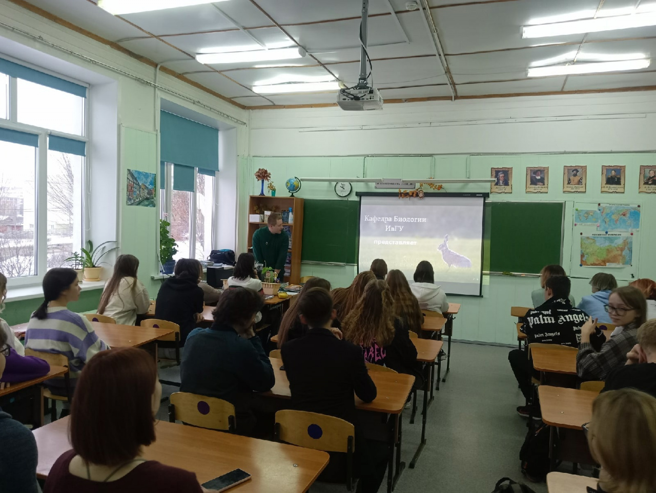24 ноября старший преподаватель кафедры А.Н. Сивухин посетил школу № 53 г. Иваново. Он встретился с учениками 10–11-х классов и рассказал об основных образовательных программах направления «Биология», о кафедрах Института математики, информационных технологий и естественных наук ИвГУ, а также охарактеризовал особенности обучения в университете, учебные занятия и практики. Был показан небольшой видеоролик о студенческой жизни на кафедре. Алексей Николаевич подробно рассказал школьникам о возможности дистанционных занятий для подготовки к ЕГЭ в «Университетском лицее». Ребята заинтересовано слушали, задавали много вопросов.