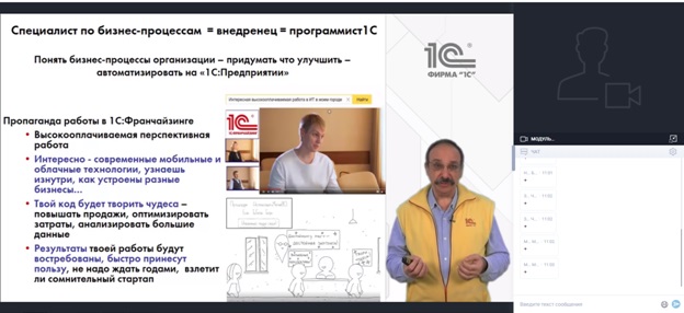 В профессиональное сообщество «1С» входят сотни тысяч человек – сотрудники фирм-франчайзи и ИТ-специалисты разных компаний. На старте и в процессе работы молодые специалисты имеют возможность разностороннего общения и обмена опытом с многочисленными коллегами, участия в профессиональных сообществах, форумах и конференциях.