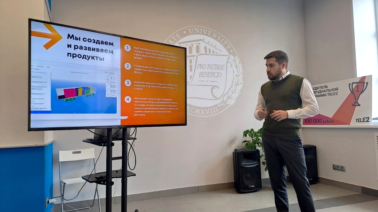Своим опытом разработки информационных систем для логистики поделились директор по связям с общественностью компании Garpix Виталий Сивков и руководитель направления по работе с образовательными учреждениями компании Garpix Сергей Мишуров. Они рассказали о системе виртуального моделирования грузового пространства Garpix Load System, которая прогнозирует расположение грузов. Тем самым компания-заказчик бережет время, деньги и силы сотрудников.