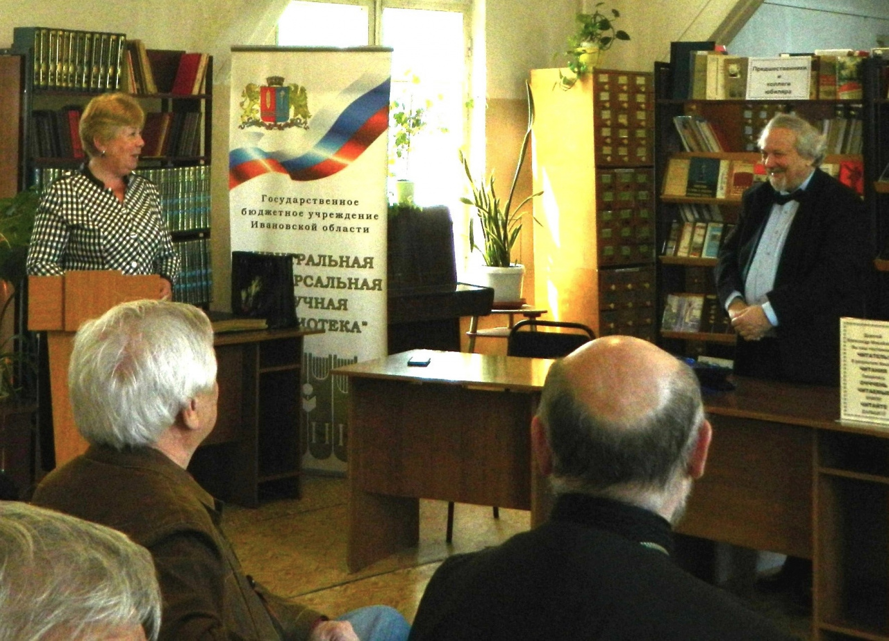 Открыл мероприятие заслуженный работник культуры России Владимир Евгеньевич Кашаев. С приветственными словами и поздравлениями выступили Председатель Ивановской городской Думы А.С. Кузьмичев, директор Центральной универсальной научной библиотеки В.В. Можжухин, Председатель Ивановского областного краеведческого общества В.В. Возилов. Все выступающие отметили большой вклад Александра Михайловича в области изучения истории, сохранения культурного наследия Ивановского края, а также просветительской деятельности. Зав. кафедрой биологии Е.А. Борисовой были подчеркнуты достижения А.М. Тихомирова в научных энтомологических исследованиях и успехах преподавательской деятельности в ИвГУ. Благодарственные письма были вручены юбиляру от коллективов ИГЭУ, ИГХТУ, Государственного архива Ивановской области, от директоров различных издательств, директоров библиотек и других организаций.