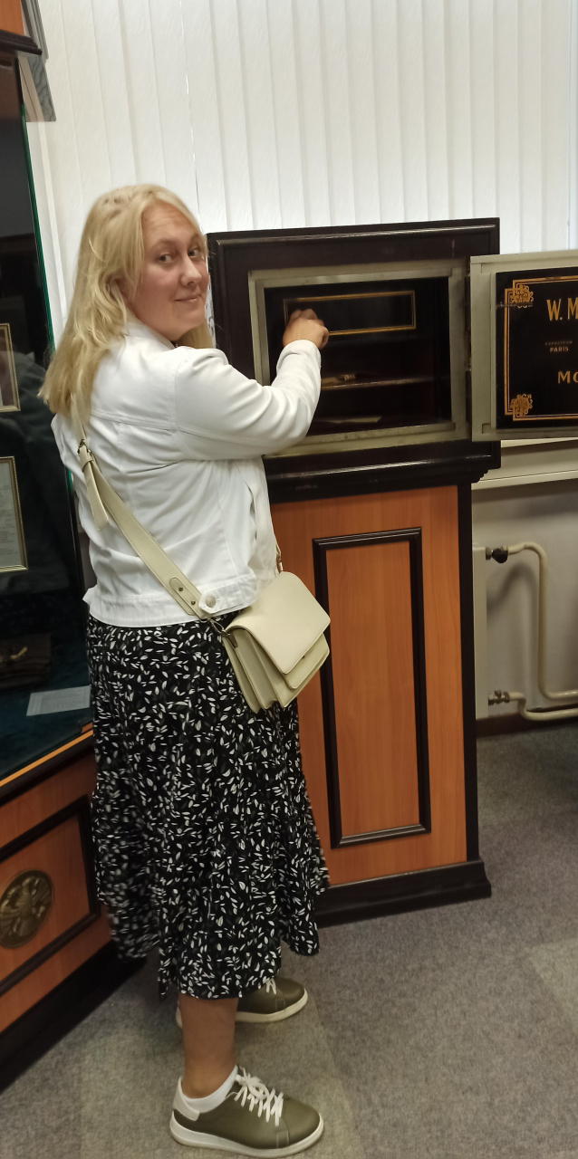 Экскурсионно-просветительская программа была проведена в музее Отделения Иваново Банка России. Мы услышали рассказ об истории становления и развития банковского дела в Ивановской области, рассмотрели образцы российских и советских денежных знаков, архивные фото и документы, а также реконструкцию рабочего места управляющего банком, где представлены старинный стол, огневзломостойкий сейф торговой марки «W.Moeller» 1901 года выпуска и старинный металлический ящик для хранения денег.