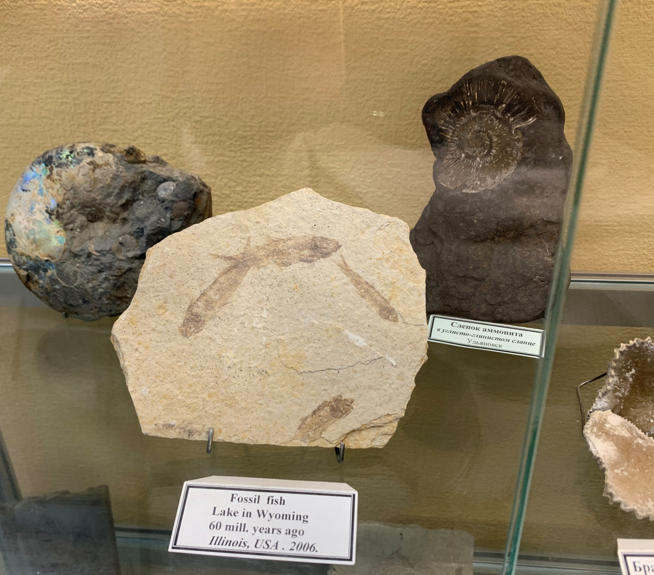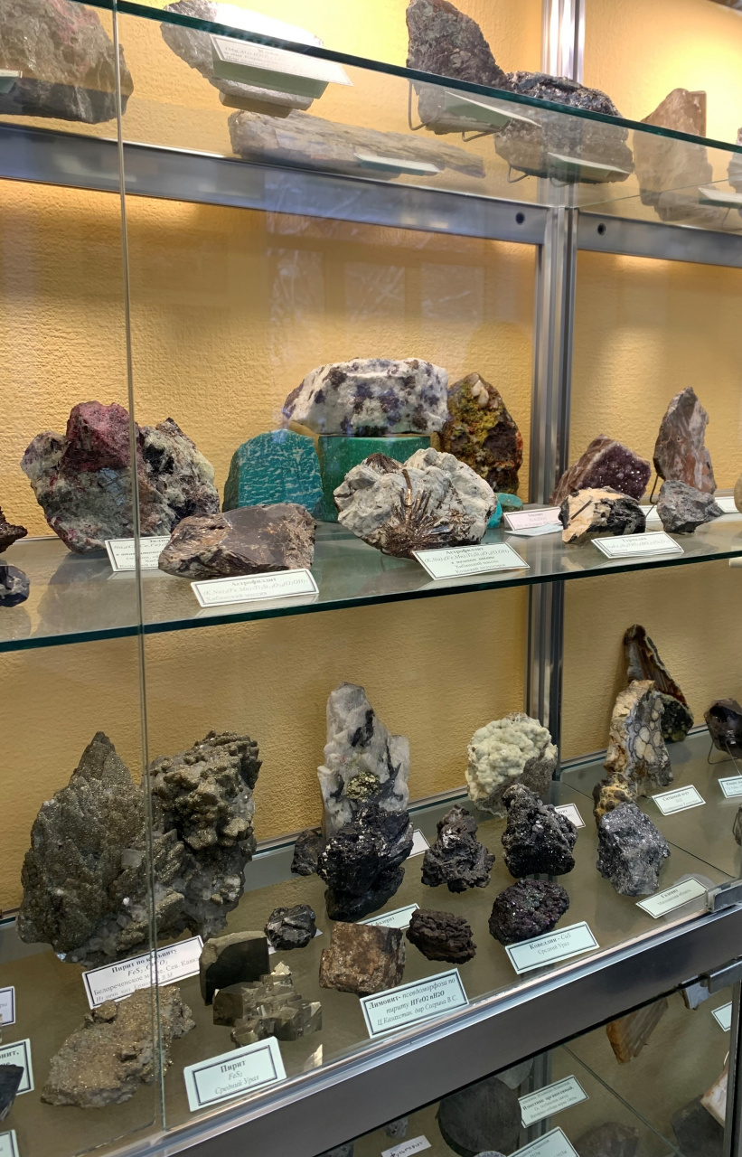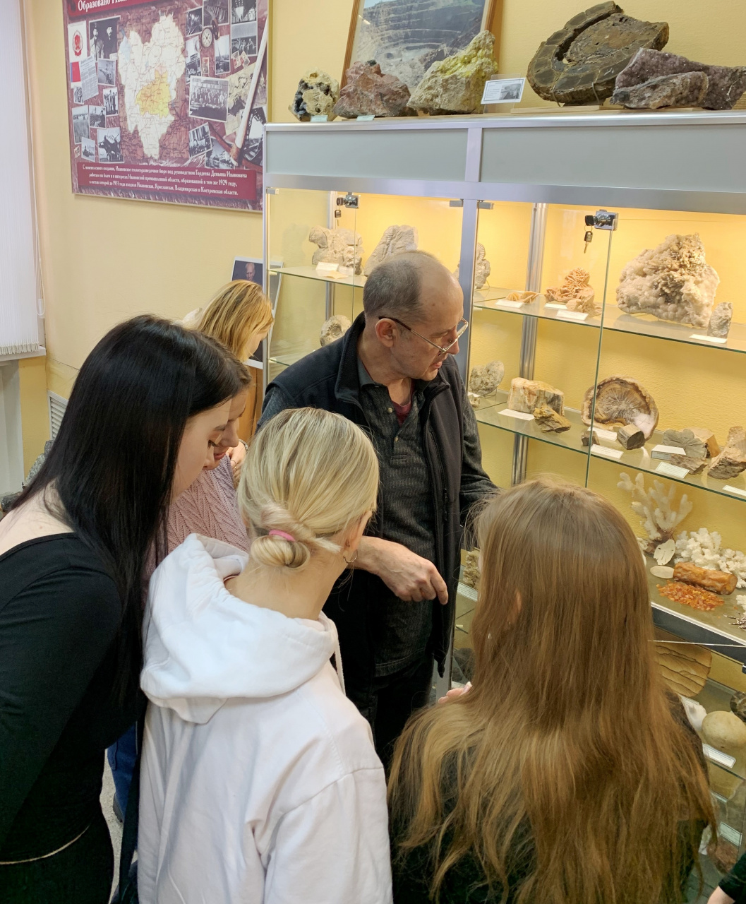 В коллекции геологического фонда находится большая коллекция природных пород и миниралов, с характеристиками которых ознакомились студенты. Наибольший интерес вызвали шунгит, возраст которого примерно 1,7млрд лет и галит (каменная соль, которую мы употребляем в пищу), а также рубины, изумруды, малахит. В процессе занятия студенты держали в руках Сихотэ-Алинский метеорит, колбу с нефтью, настоящий зуб мамонта, австралийский опал и изумруды из Колумбии.