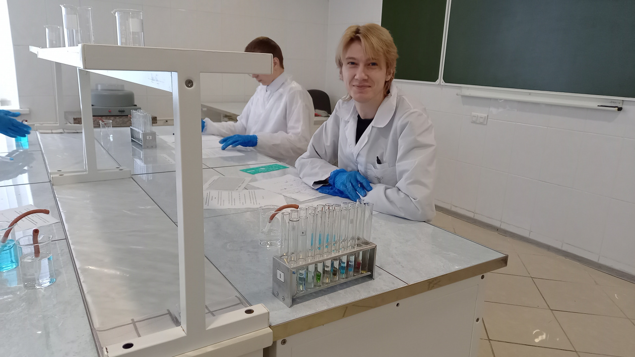 Как известно, для химика-профессионала очень важны не только светлая голова, но и хорошие руки. Игорь Абрамов, представлявший нашу команду на экспериментальном туре, доказал, что нашим студентам по силам решать самые сложные и каверзные химические задачи. На олимпиаде студентам было предложено с помощью единственного реактива (раствора сульфата меди) определить содержимое 10 пробирок, содержащих бесцветные растворы разных веществ. Игорь с этим блестяще справился. Молодец!