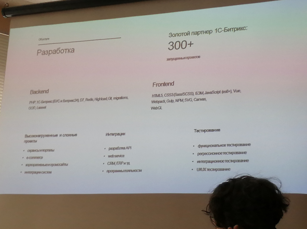 Ведущие эксперты компании Дмитрий Угаров и Яков Ланин рассказали о перспективных направлениях в IT-сфере, о направлениях деятельности компании, о клиентах и проектах, а также о вакансиях и возможностях совмещения учебы и работы посредством гибкого графика. Кроме того, была проведена игра на знание технологий веб-разработки среди участников встречи для выявления уровня знаний и навыков. Главным призом была книга «Как создать стартап, который изменит будущее», которую выиграла студентка 4 курса Прикладной информатики Минкина Александра.