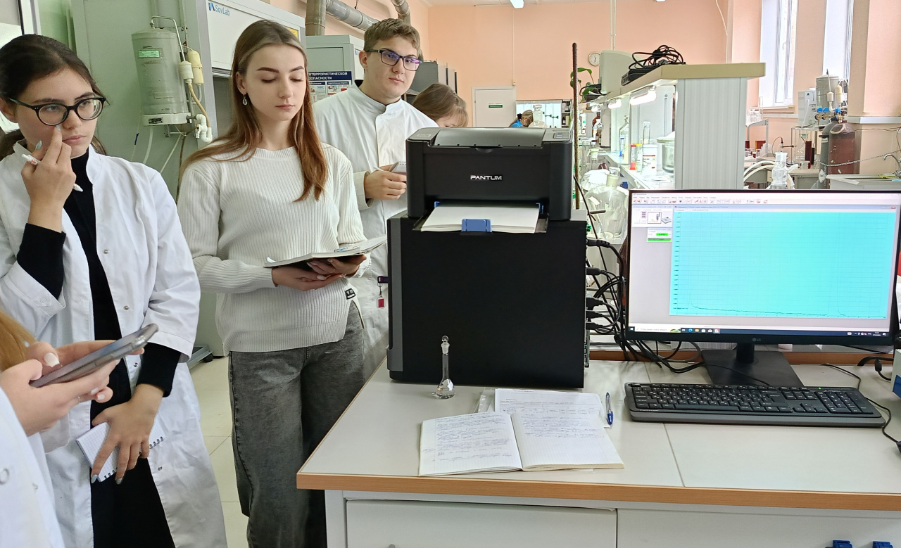17 октября 2024 г. студенты 2 курса кафедры биологии посетили лаборатории ФГБУ «ЦЛАТИ по ЦФО» в рамках малого лабораторного практикума по дисциплине «Физиология» под руководством зав. кафедрой Е.А. Борисовой. Сотрудники учреждения рассказали студентам о работе по контролю состава материалов и веществ, проведению различных анализов необходимых для экологического контроля. Ведущие инженеры показали работу современных приборов, ребята получили возможность исследовать пробы воды и различных стоков по нескольким параметрам, включая наличие тяжелых металлов в пробах воды атомно-адсорбционным и хроматографическими методами. Студенты проявили большой интерес, задавали много вопросов. Новые знания и практические навыки, полученные на занятиях в профильных организациях, имеют большое значение в мотивации студентов, в их профориентации, и в целом в процессе общего биологического образования.