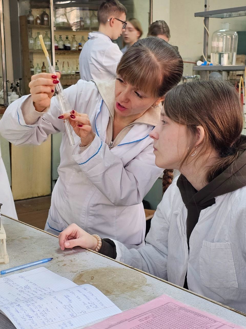 Лабораторную работу по неорганической химии выполняли участники интенсивной профильной смены по химии в четверг, 9 января, на базе Ивановского государственного университета.