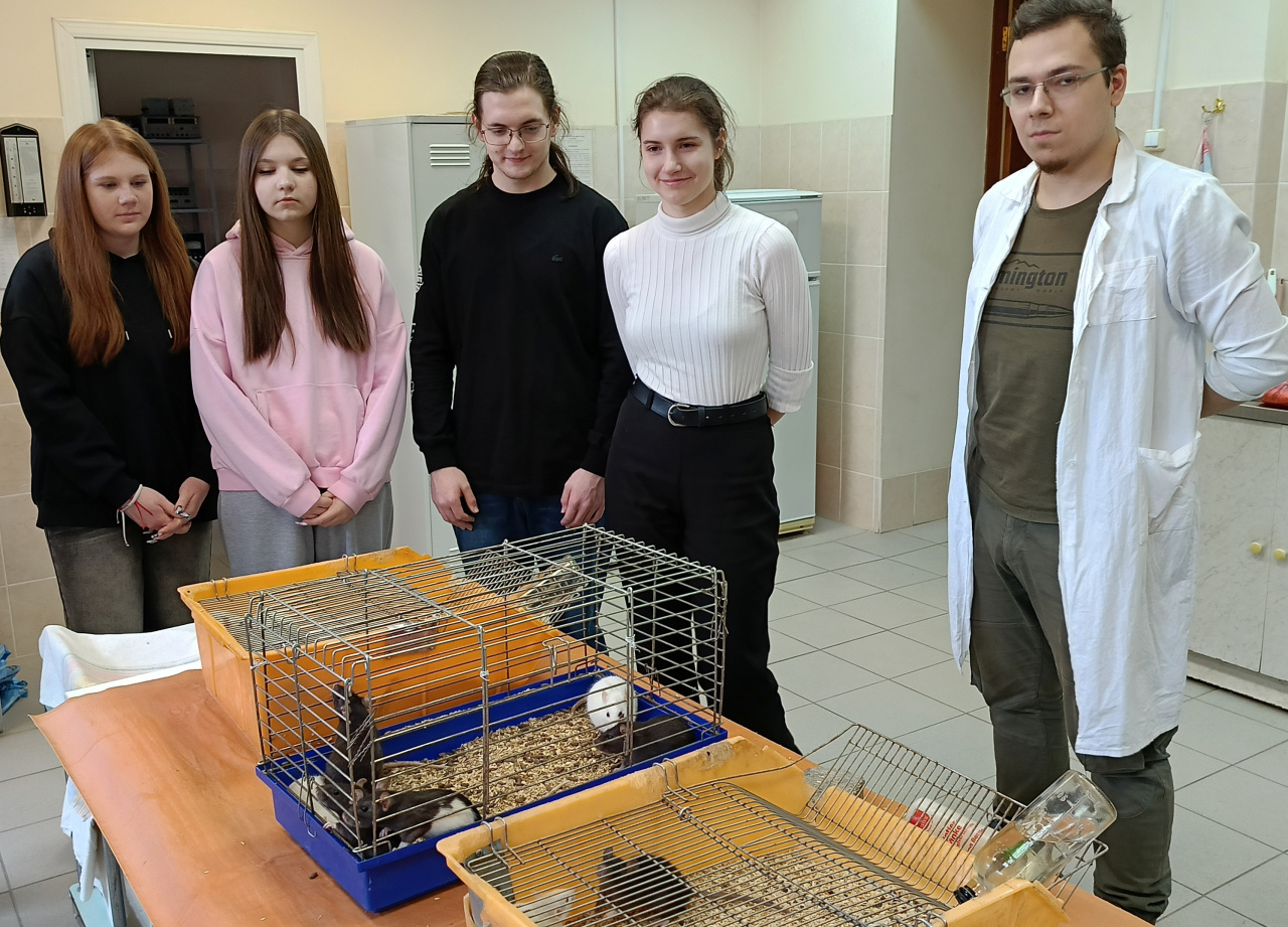 27 марта 2025 г. в Виварии кафедры биологии ИвГУ проходило занятие-экскурсия с учащимися 10 класса биологического профиля лицея № 67 г. Иваново под руководством учителя биологии Н.И. Безсинной – выпускницы ИвГУ. Тема занятия – "Медицинская генетика".