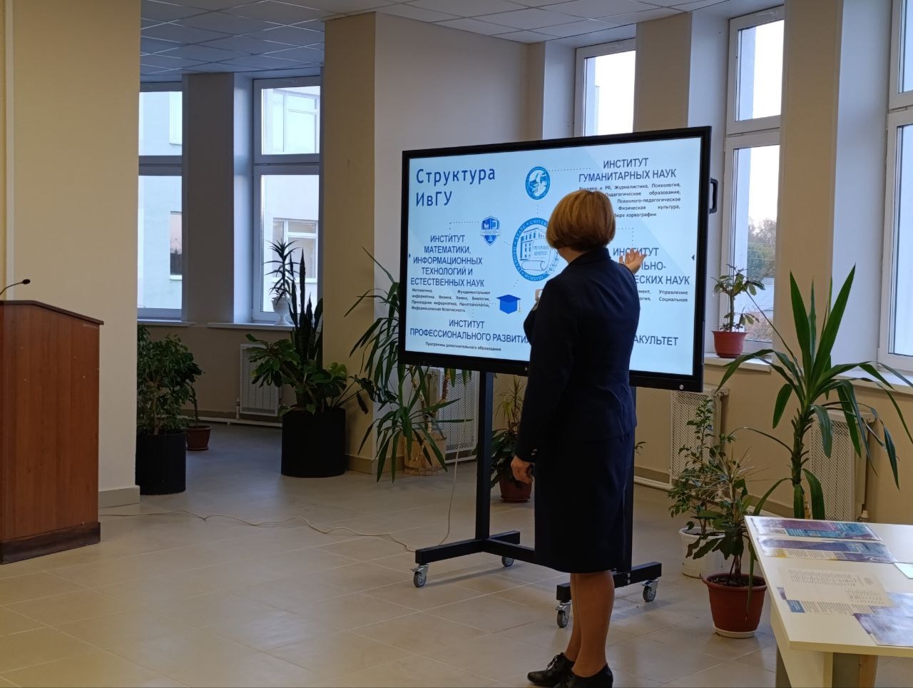 25 сентября на базе Савинской средней школы прошла информационная встреча директора Института математики, информационных технологий и естественных наук Т.П. Кустовой с родителями школьников 10–11-х классов. В Савинской школе обучаются более 550 ребят, многие из них выбирают для сдачи ЕГЭ по биологии, химии, физике и профильной математике. В школе открыта «Точка роста», а среди учителей много выпускников ИвГУ.