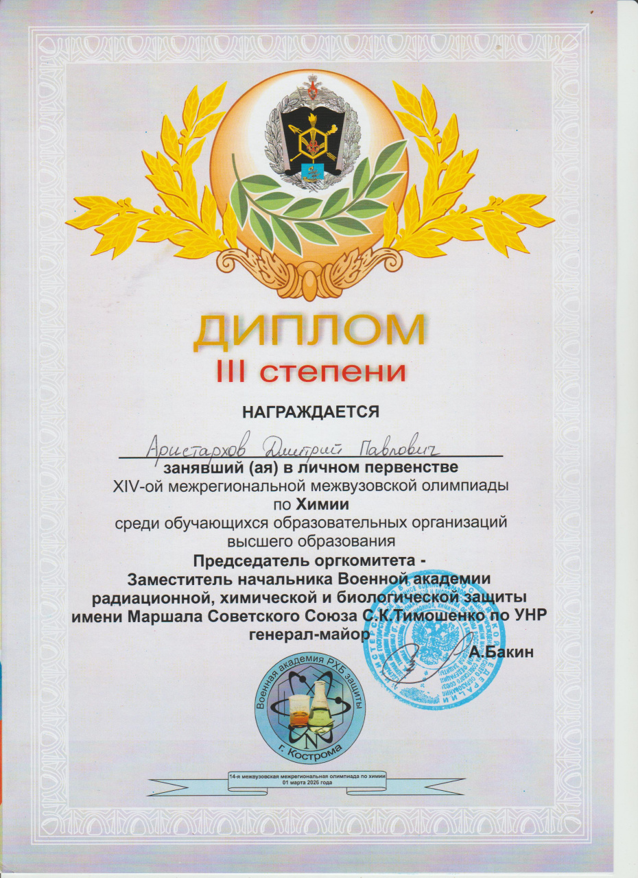 1 марта в Костроме на базе Военной академии радиационной, химической и биологической защиты им. Маршала Советского Союза С.К. Тимошенко прошла XIV Межрегиональная межвузовская олимпиада по химии. В ней приняли участие более 70 студентов в составе 11 команд из ведущих вузов России: