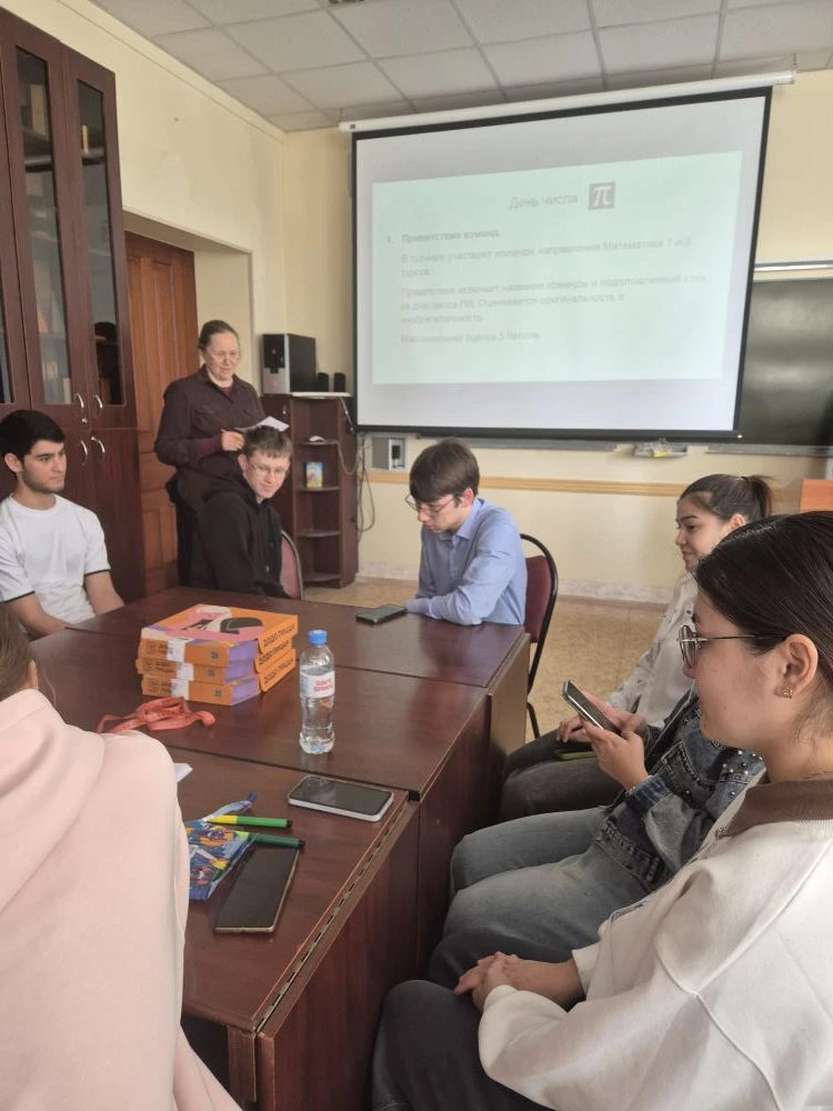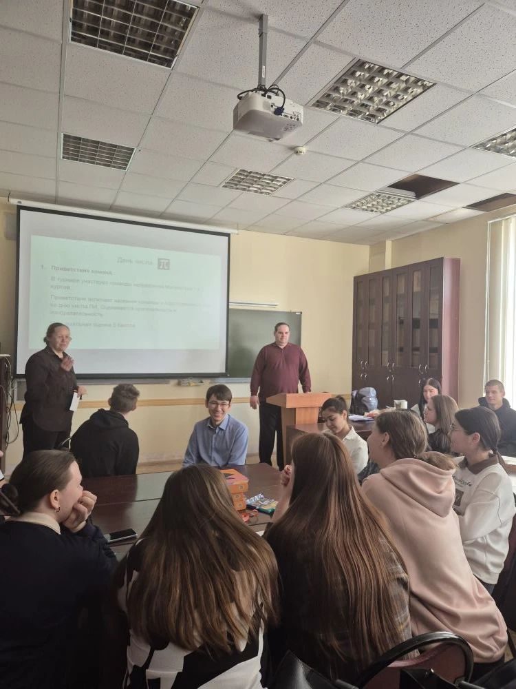 20 марта 2026 преподаватели кафедры фундаментальной математики и студенты 1–2-го курсов направления 01.03.01 Математика отметили Международный день числа «Пи». Преподаватели и студенты собрались в этот праздничный день в 326-й аудитории. Мероприятие открыл заведующий кафедрой фундаментальной математики Д.В. Туртин, поздравив всех присутствующих с этим замечательным профессиональным праздником.