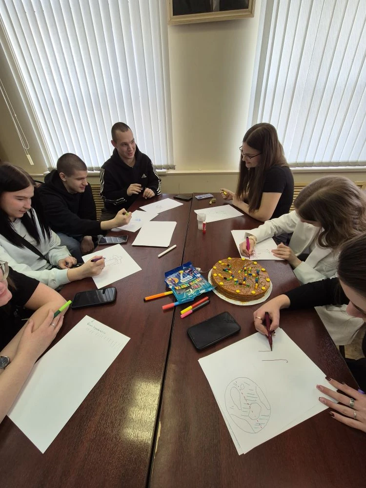 Среди студентов был проведен праздничный турнир. Первый курс представляла команда «ПИ-арт», второй – «Три и еще немножко». В состав жюри турнира вошли Е.В. Еремина, Д.В. Туртин, А.Ф. Шмелева. Команды должны были выполнить 10 заданий, за которые начислялись баллы от 0 до 5.