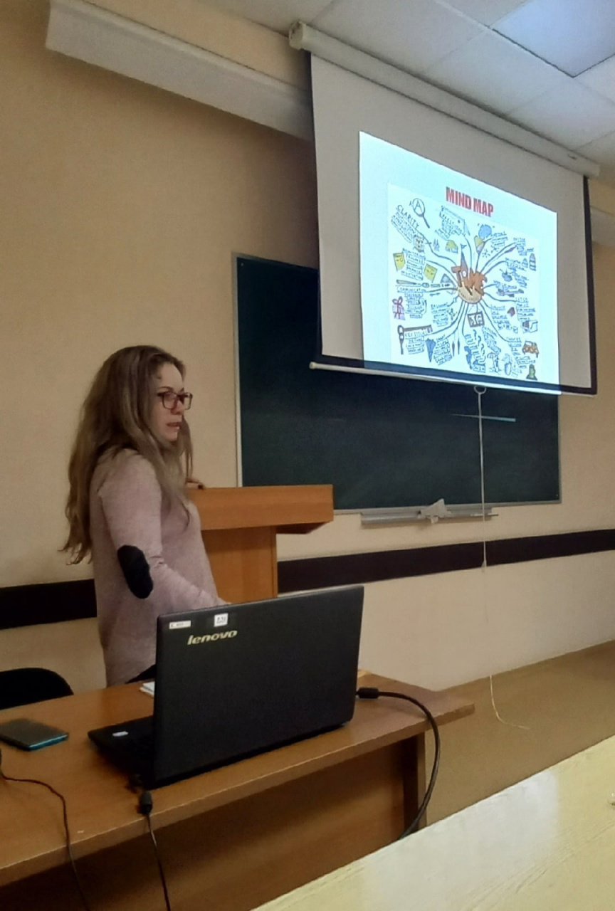 Особое внимание было уделено работе над функциональной и читательской грамотностью на уроках ИЯ, которая должна подготовить ученика к использованию полученных знаний в реальных ситуациях. Учитель поделилась со студентами своими лайфхаками в работе с разными возрастными категориями обучающихся и ответила на вопросы, волнующие будущих специалистов.