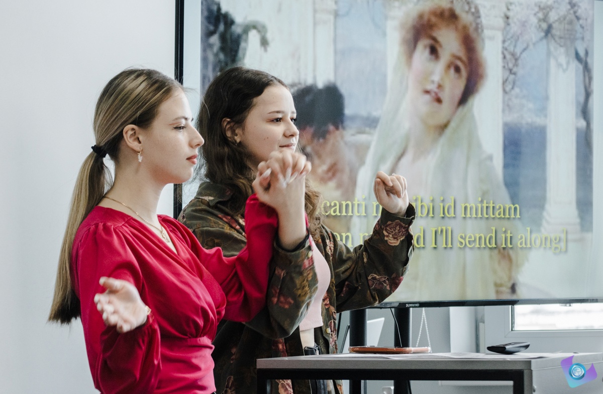 По обычаю, вначале прозвучал гимн студенчества, ведь именно латынь, на которой он написан, была языком, в прошлом объединявшим всех студентов Европы. Можем только предполагать, для скольких пар студентов он стал языком любви. «Amorem canat aetas prima! Пусть юность поет о любви!». Латинские слова о любви органично вплетены в ткань произведений русского пылкого гения – А.С. Пушкина, но и жителей туманного Альбиона они не оставляют равнодушными: так, Эдвард О'Хара перевел на латынь английскую песню “From me to you”: “Amore a me tibi”.