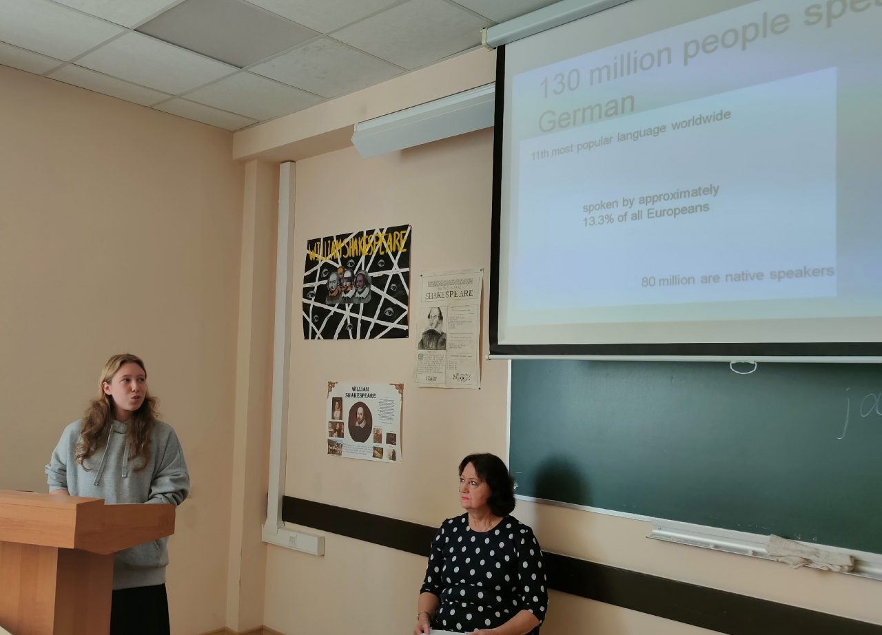 25 сентября в преддверии Европейского дня языков (European Day of Languages – празднуется ежегодно в Европе 26 сентября) кафедрой зарубежной филологии было проведено мероприятие, посвященное данному событию. Оно прошло в формате открытого занятия с участием студентов- первокурсников, изучающих немецкий язык как второй, студентов четвертого курса, обучающихся по программе «Педагогическое образование», и преподавателей кафедры.